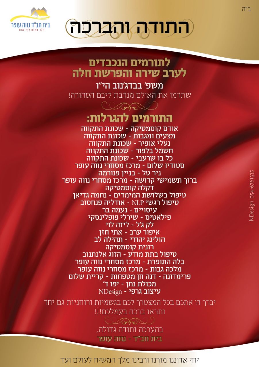 מעל מאה נשים הגיעו לערב מיוחד שנערך באולמי ארמונות מזל ע"י בית חבד נווה עופר תל אביב.את הערב פתח הרב שמואל מחפוץ. שליח הרבי שליט"א מלך המשיח.