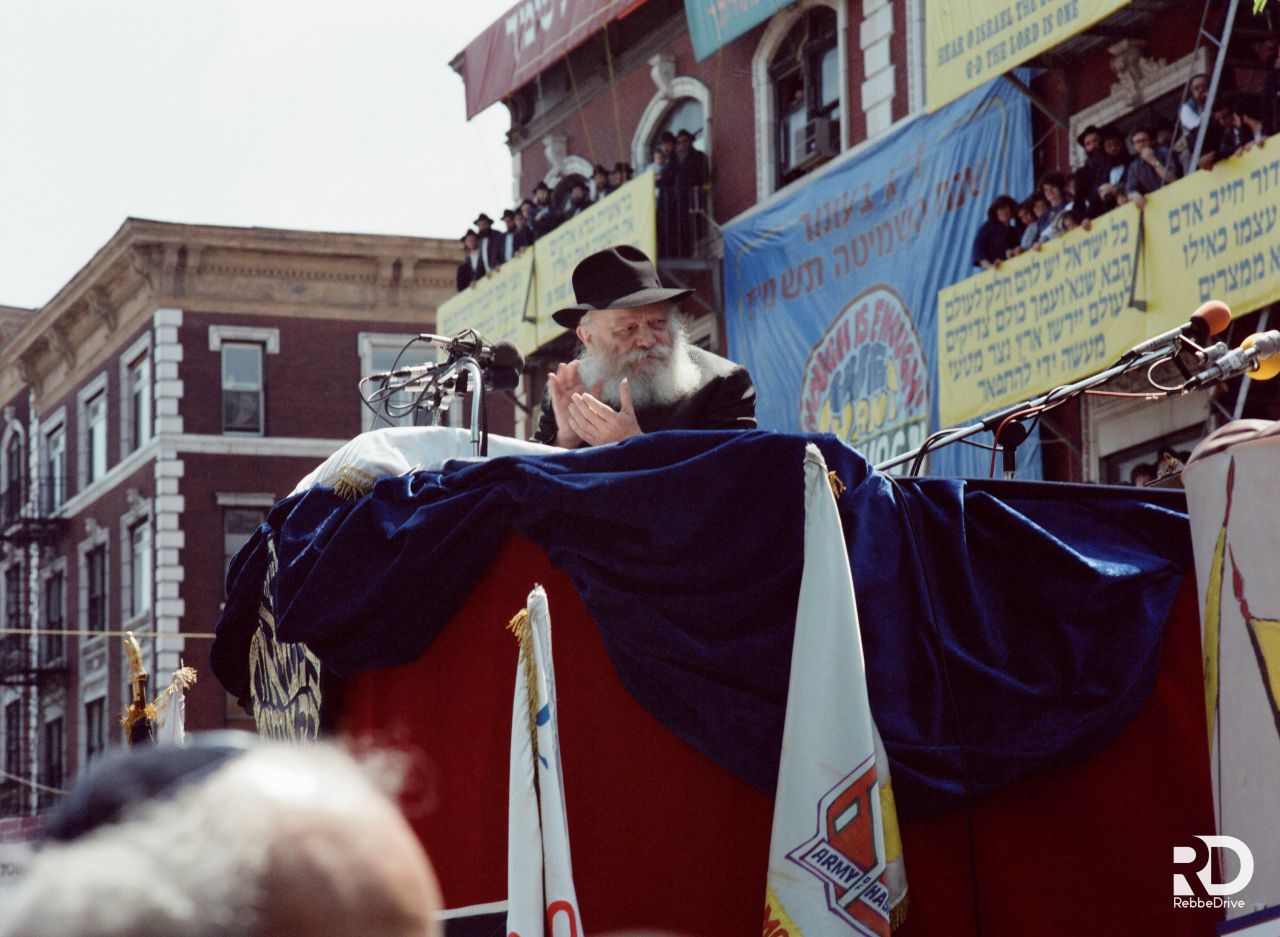 מטוסי סילון חגו באויר. מעל שכונת קראון הייטס. וכתבו על פני השמים: "בית יעקב מצדיע לרבי מליובאוויטש". הרב לייבל גרונד הסב את תשומת לבו של כ״ק אדמו״ר שליט״א והרבי הרים עיניו והתכונן לשמים.
