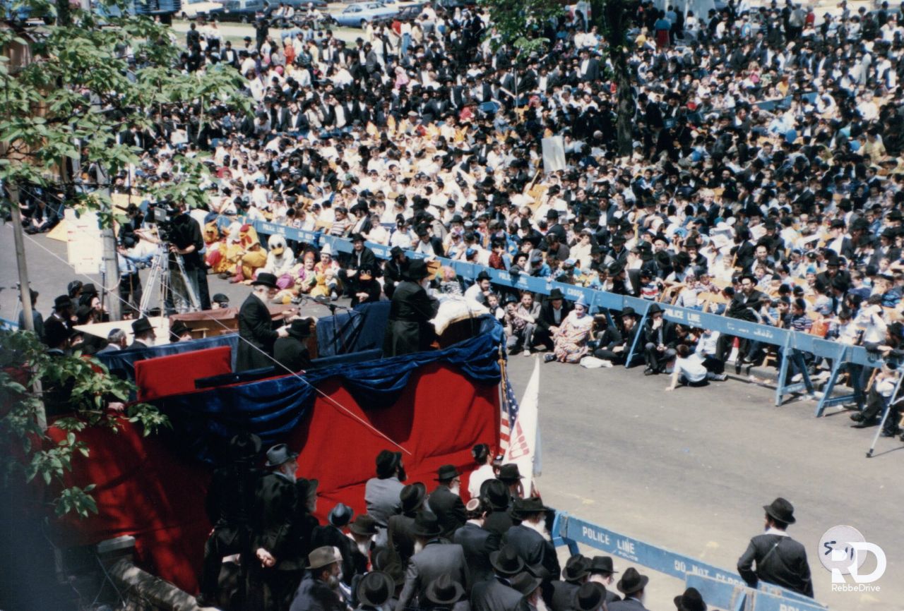 מסביב לקהל אלפי הילדים שישבו עם מוריהם ומדריכים. ניצבו אלפי חסידי חב״ד ורבים מתושבי ניו־יורק שבאו לקחת חלק ב״פאראד" קידוש ה־ זה לכבוד ל״ג בעומר יום ההילולא של רבי שמעון כר יוחאי.