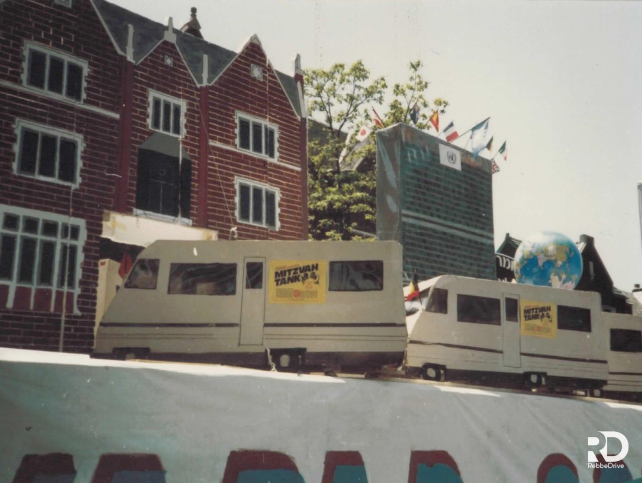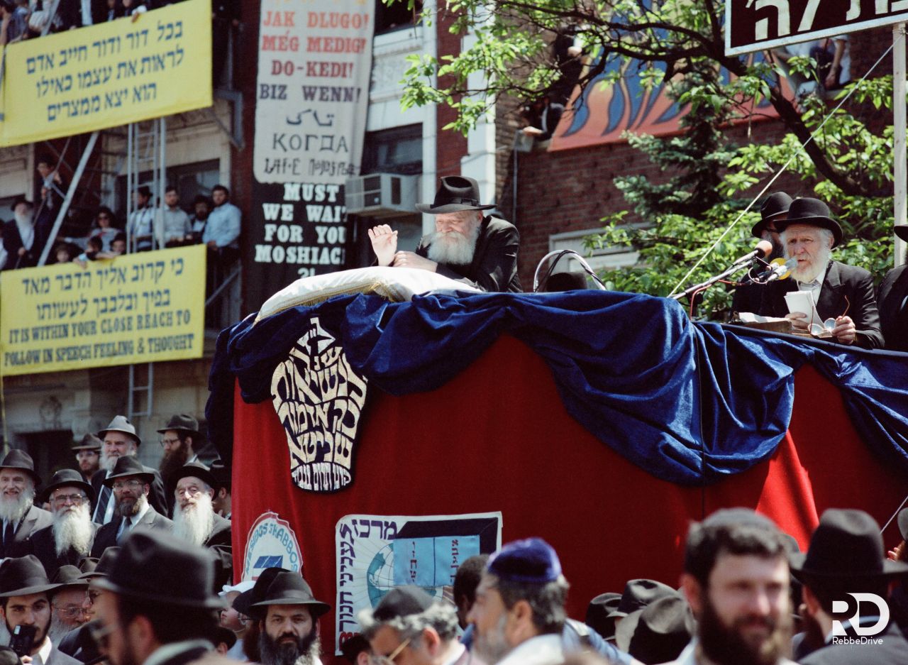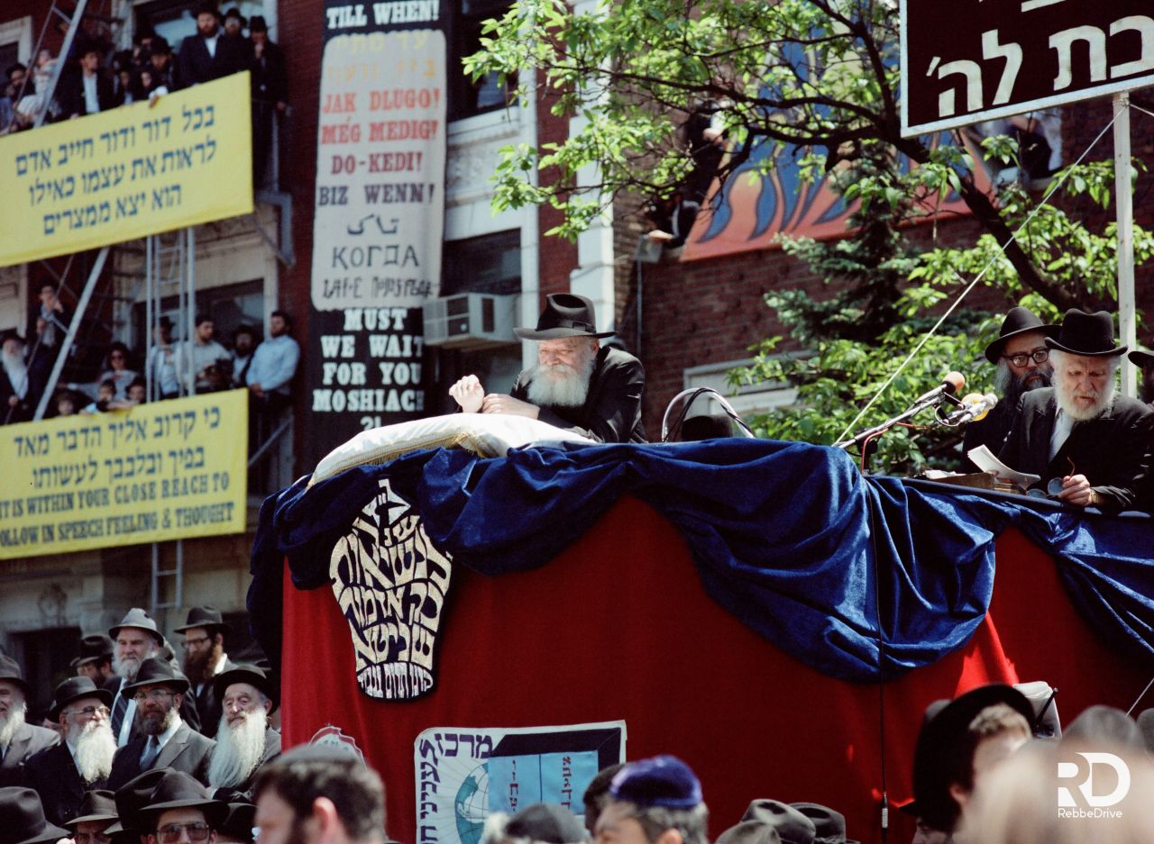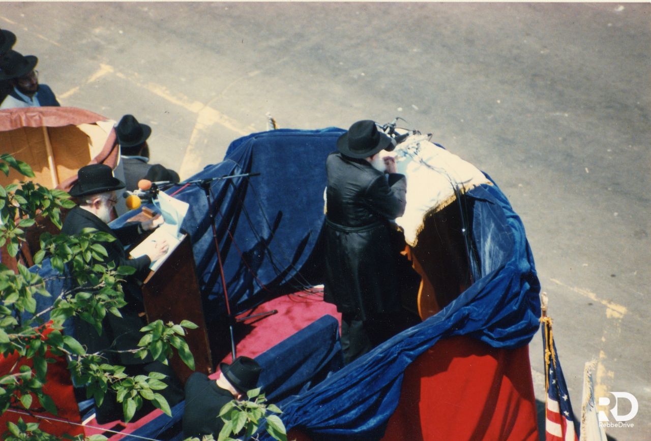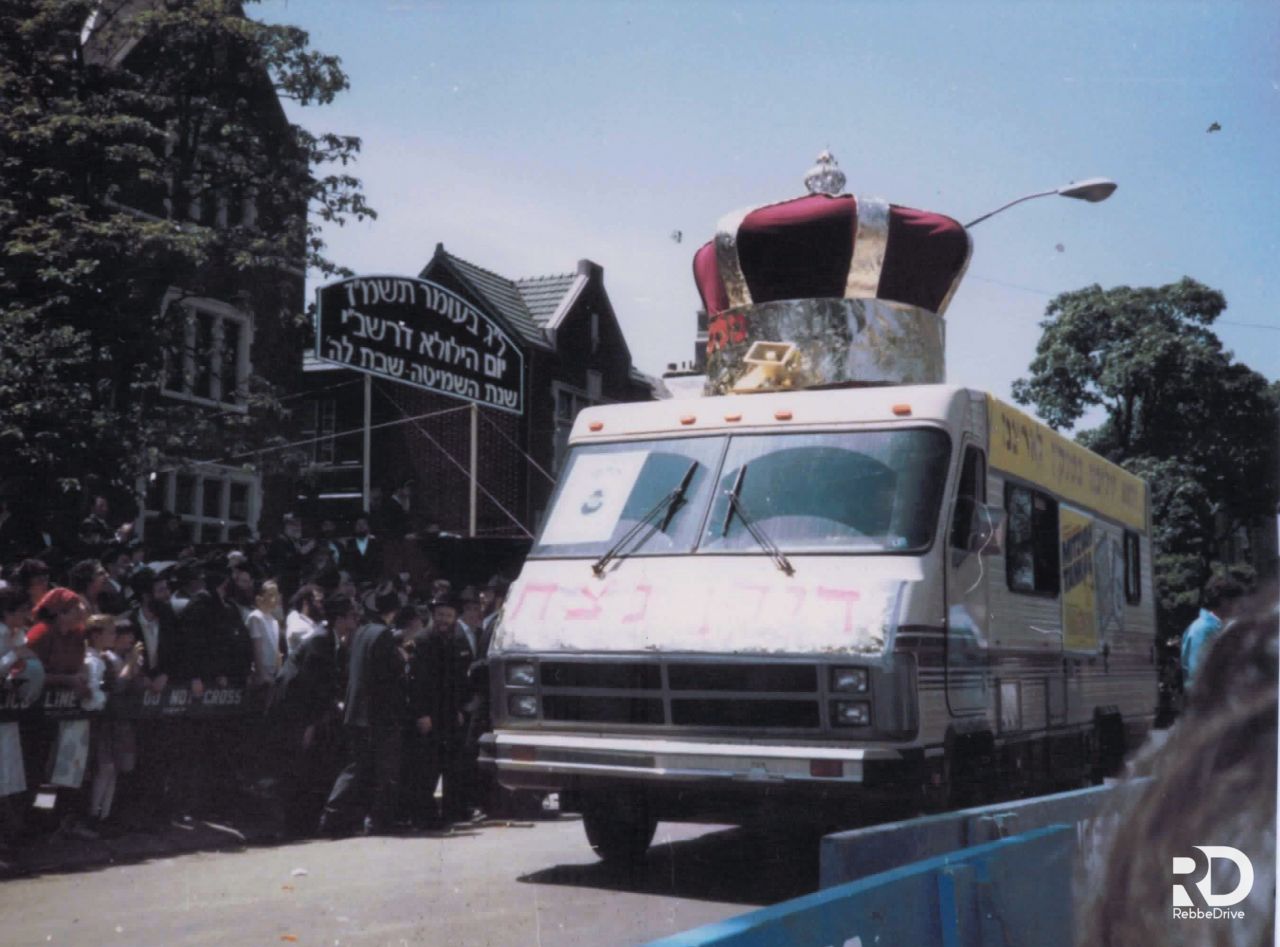 תלמידי ישיבת תומכי תמימים ליובאוויטש במוריסטון בנו על גבי המשאית. שעברה אחר־כך. את "עיר חב״ד" בירושלים לעולי רוסיה. המשאית עוררה התענינות מרובה אצל כל הצופים וכ״ק אדמו״ר שליט״א הורה לפרופסור ברנובר. שעמד כסמוך. לעלות עליה...