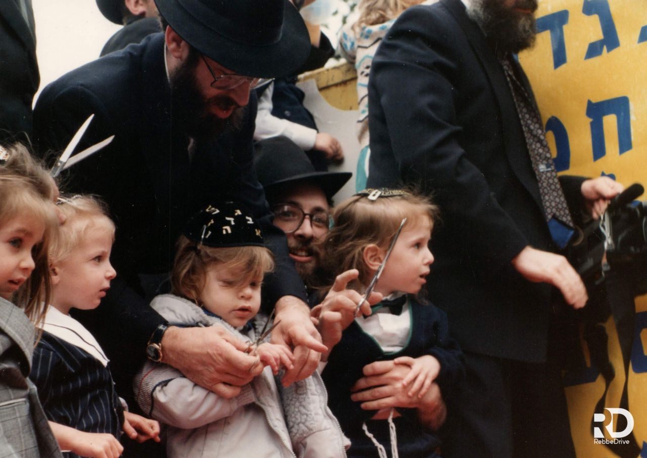 משאית מיוחדת ועליה ילדים שהגיעו לגיל שלוש והוריהם עברה לפני כ״ק אדמו״ר שליט״א כשעליה "קבר רשב״י", חדר "בית חב״ד", ועוגה של דבש... כשכ״ק אדמו״ר שליט״א מסמן בידיו הק׳ לגנוז את השערות.