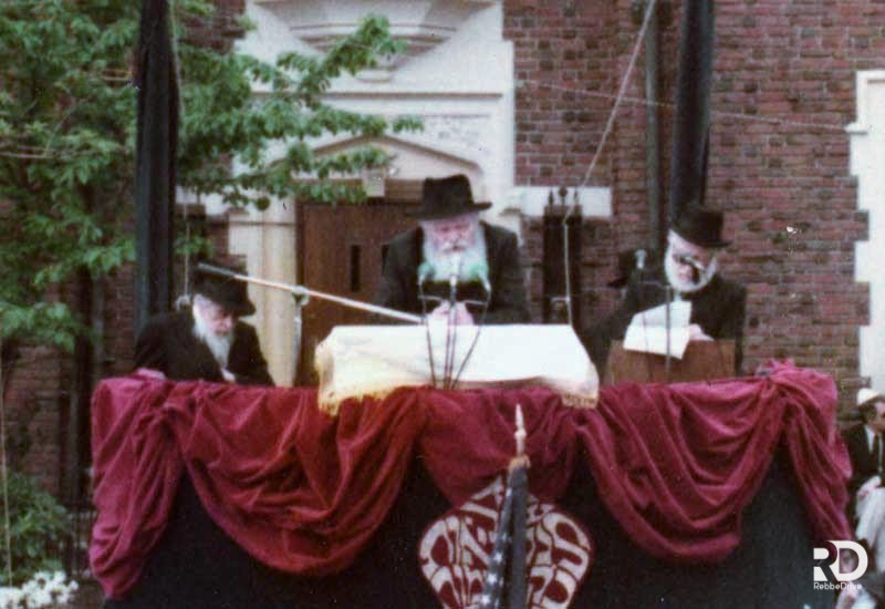 עם עלות השמש נראתה התמונה הכללית בערך כך: בנין המשרדים הסמוך ל-770 הי' מעוטר כולו בשלטי ענק – שנים עשר הפסוקים, "וידעו כי אתה...", "הריני מקבל" ו"אך צדיקים". למרגלות 770 בימה גבוהה מעוטרת בקטיפה, ועלי' שלט כחול שעליו נכתב באותיות זהובות: "ל"ג בעומר תהי' שנת דברי משיח הילולא דרשב"י", ועל דופנה הקדמי של הבימה עוצבה הכתובת "ל"ד לנשיאות כ"ק אדמו"ר שליט"א, קרנו תרום בכבוד" בצורת כתר.