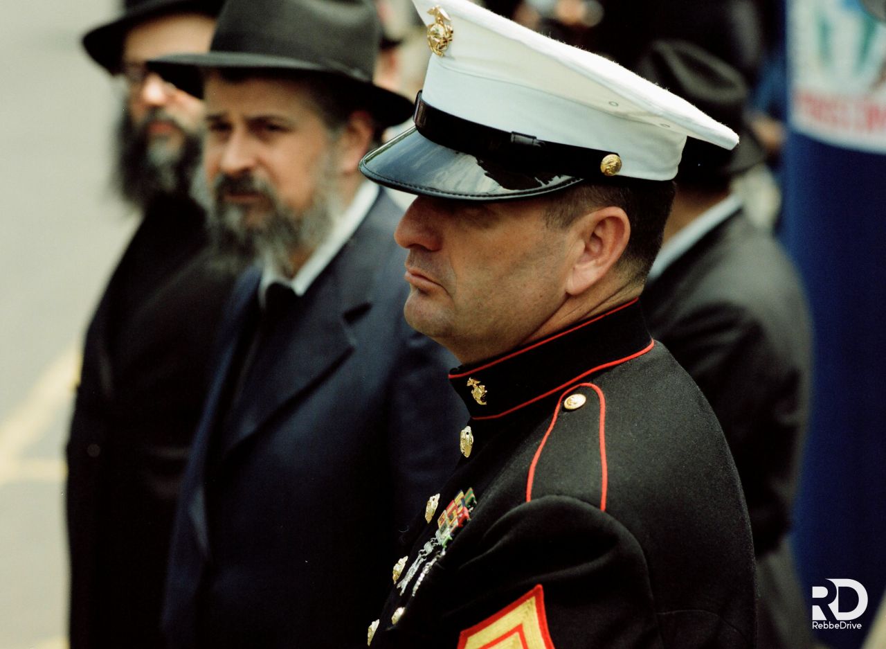 לאחר המשטרה והיחדים הגיע תורם של אנשי הצבא, את ה"מצעד הצבאי" פתחו מספר דגלנים שצעדו לפני התזמורת הצבאית, ולאחריהם צעדו חיילים ברכב וברגל. את חלקם סיימו אנשי הצבא ביריית מספר מטחי כבוד. כשעברו אלה הצדיע להם כ"ק אדמו"ר שליט"א.