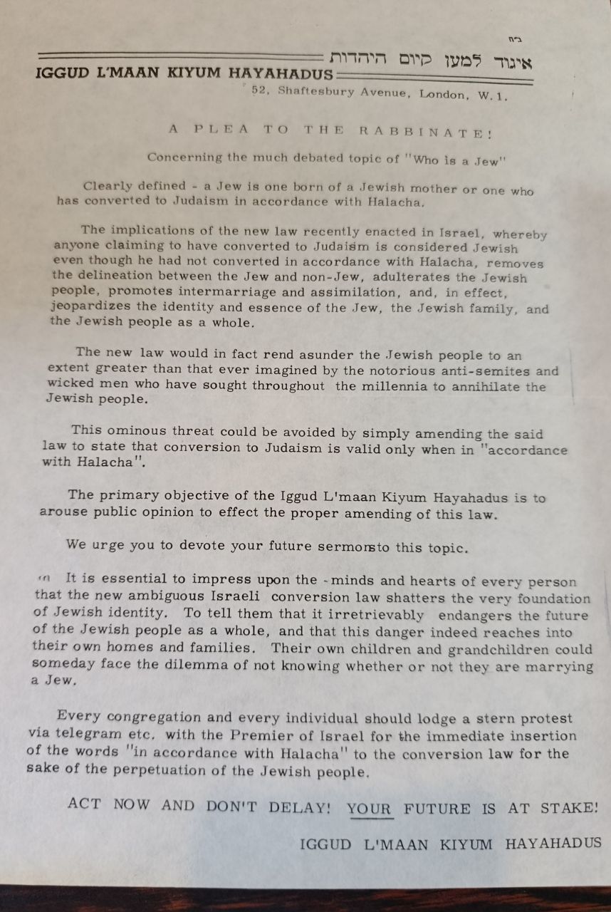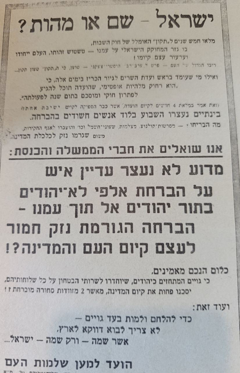 אתר הגאולה חושף לקוראים, כרוזים היסטוריים המתעדים את פעולות החסידים לתיקון חוק "מיהו יהודי" על-פי בקשת הרבי שליט"א מלך המשיח.