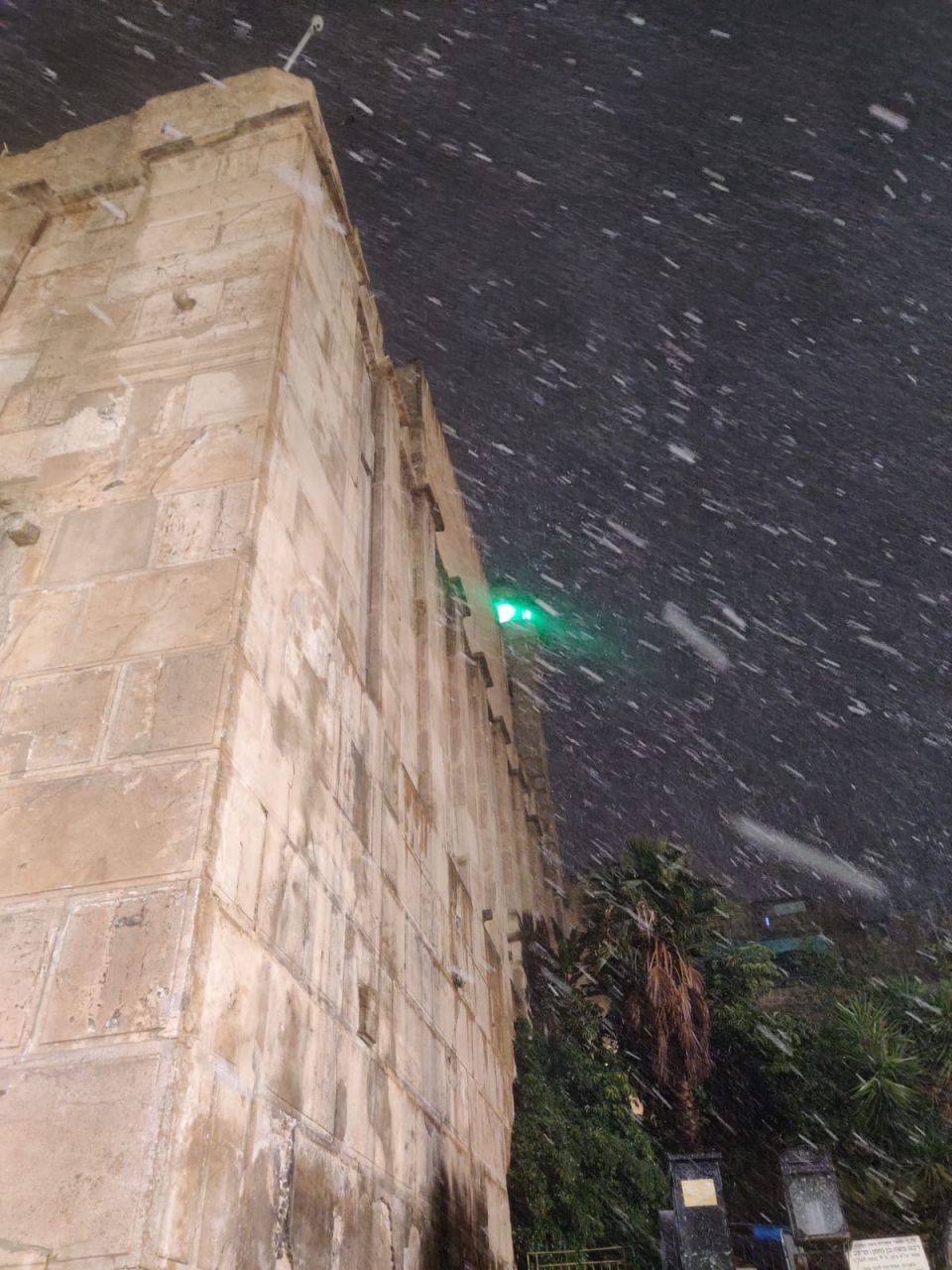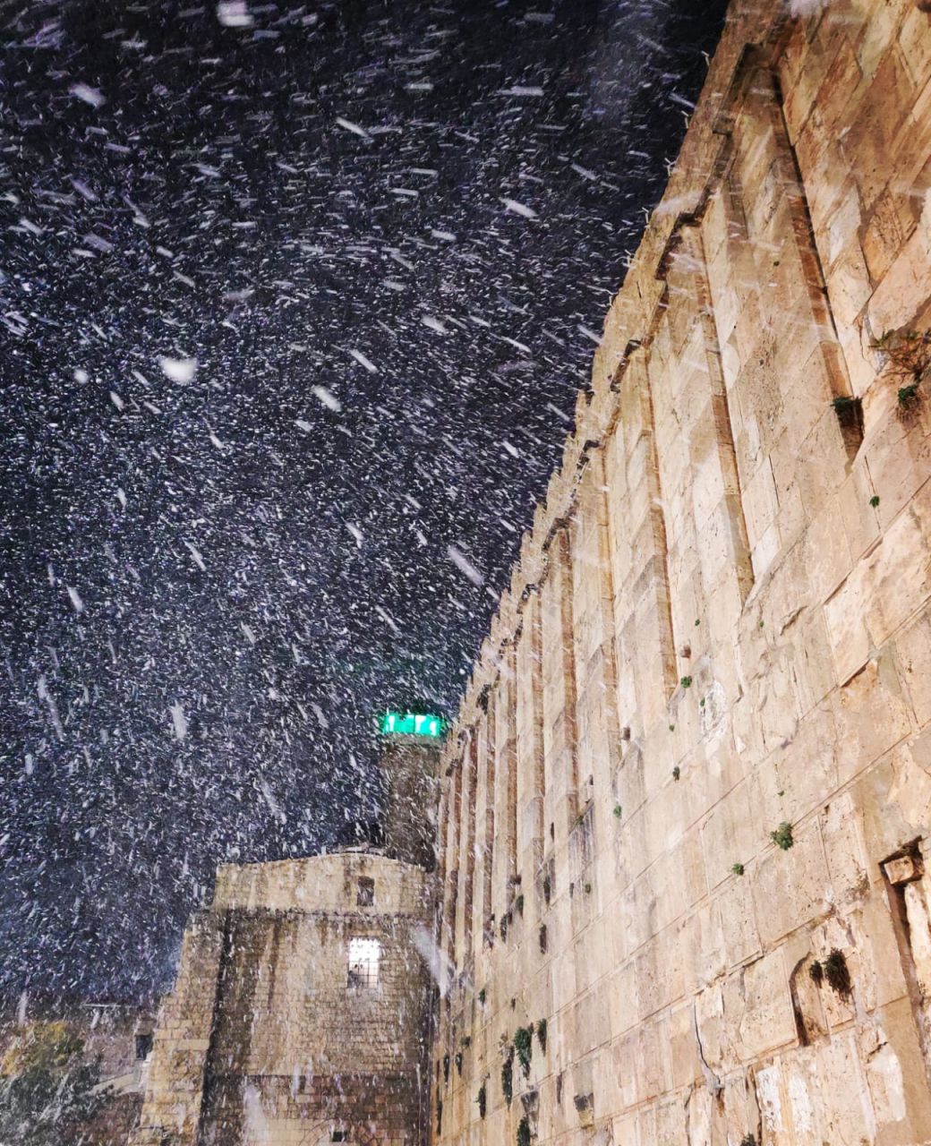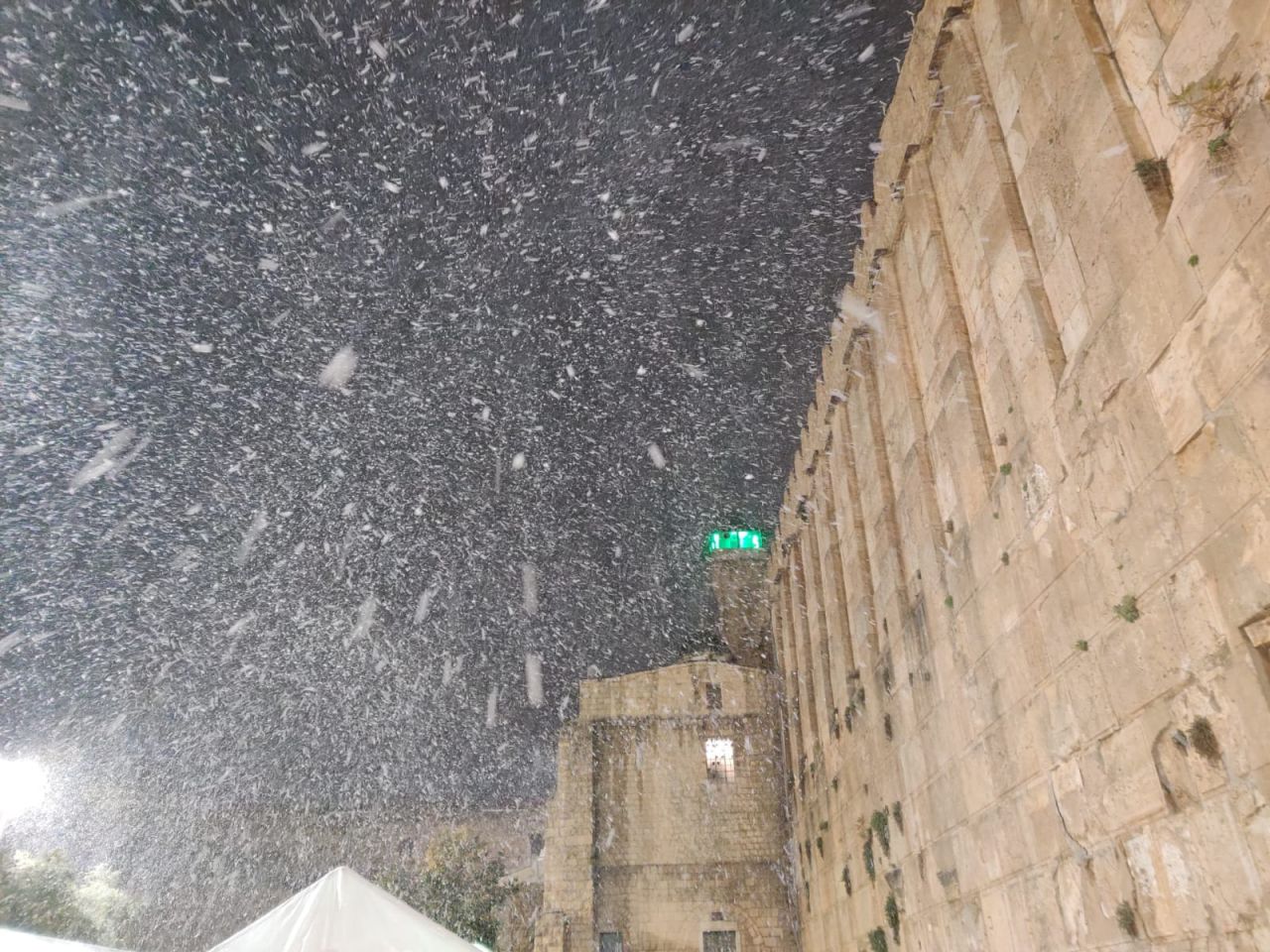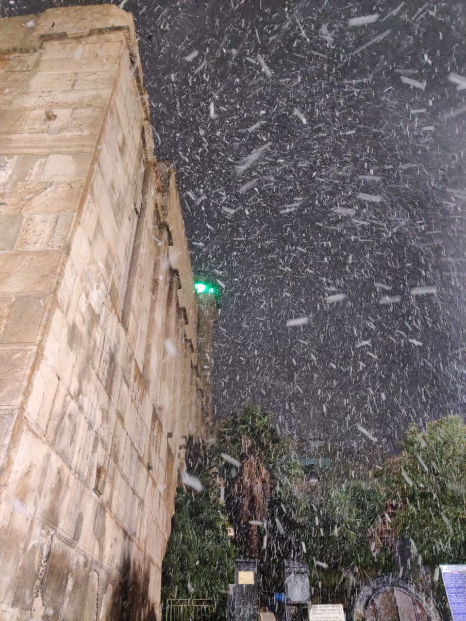 גם בעיר הקודש חברון ירד השלג, ומתפללים רבים במערת המכפלה יצאו החוצה לחזות בפלא הלבן.