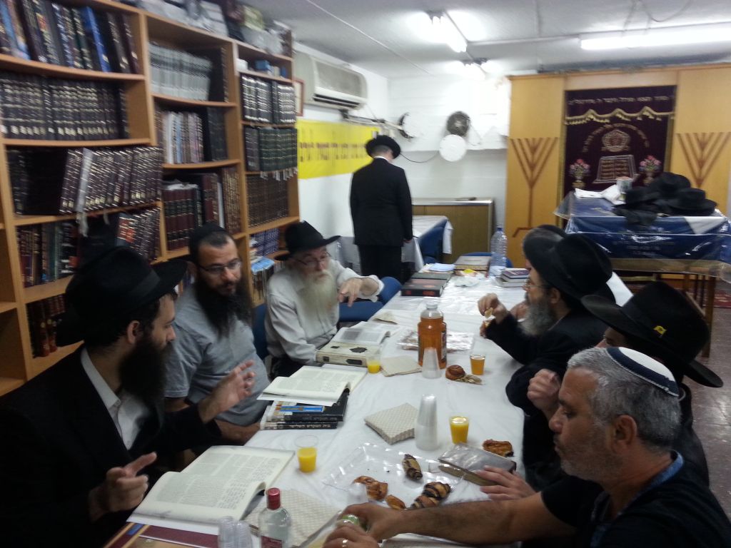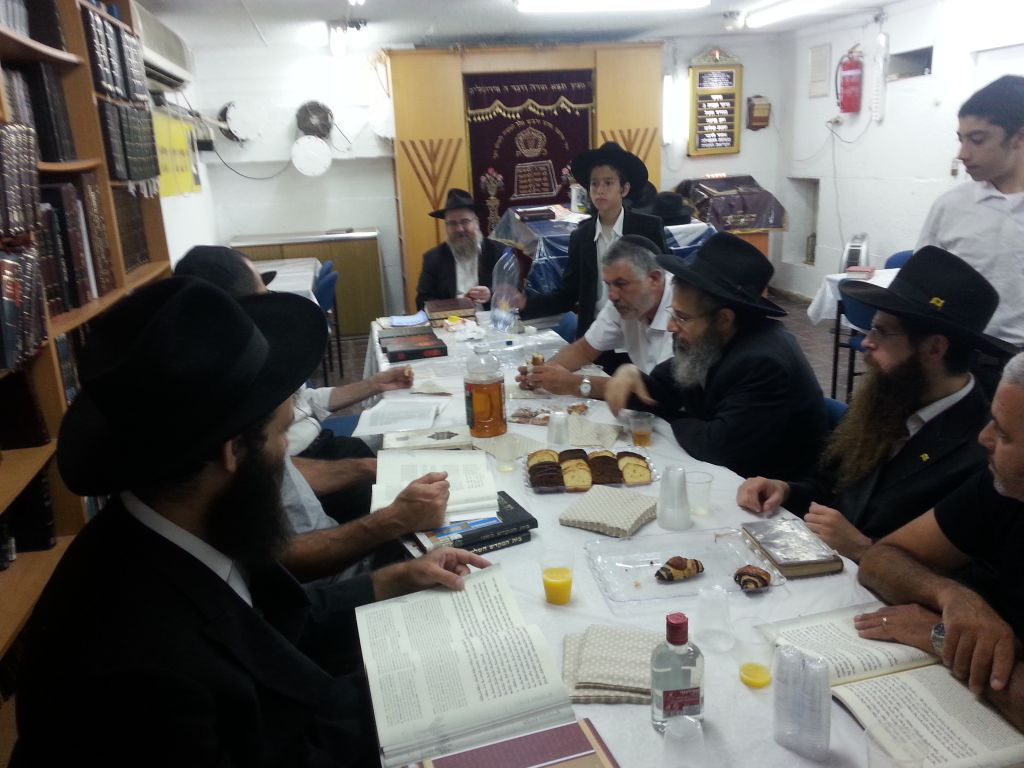 בבית כנסת חב"ד רמת הנשיא בת ים רח' מימון 26, נערכו ב"תשעת הימים" סיומי מסכת בתשעת הימים, אחרי הלימוד היומי בהלכות בית הבחירה ביחזקאל, מסכת מדות והרמב"ם. בתמונות, סיום מסכת קידושין ביום ה' שבוע שעבר, ע"י הרה"ח אמיר רחמן פור בהשתתפות המתפללים.