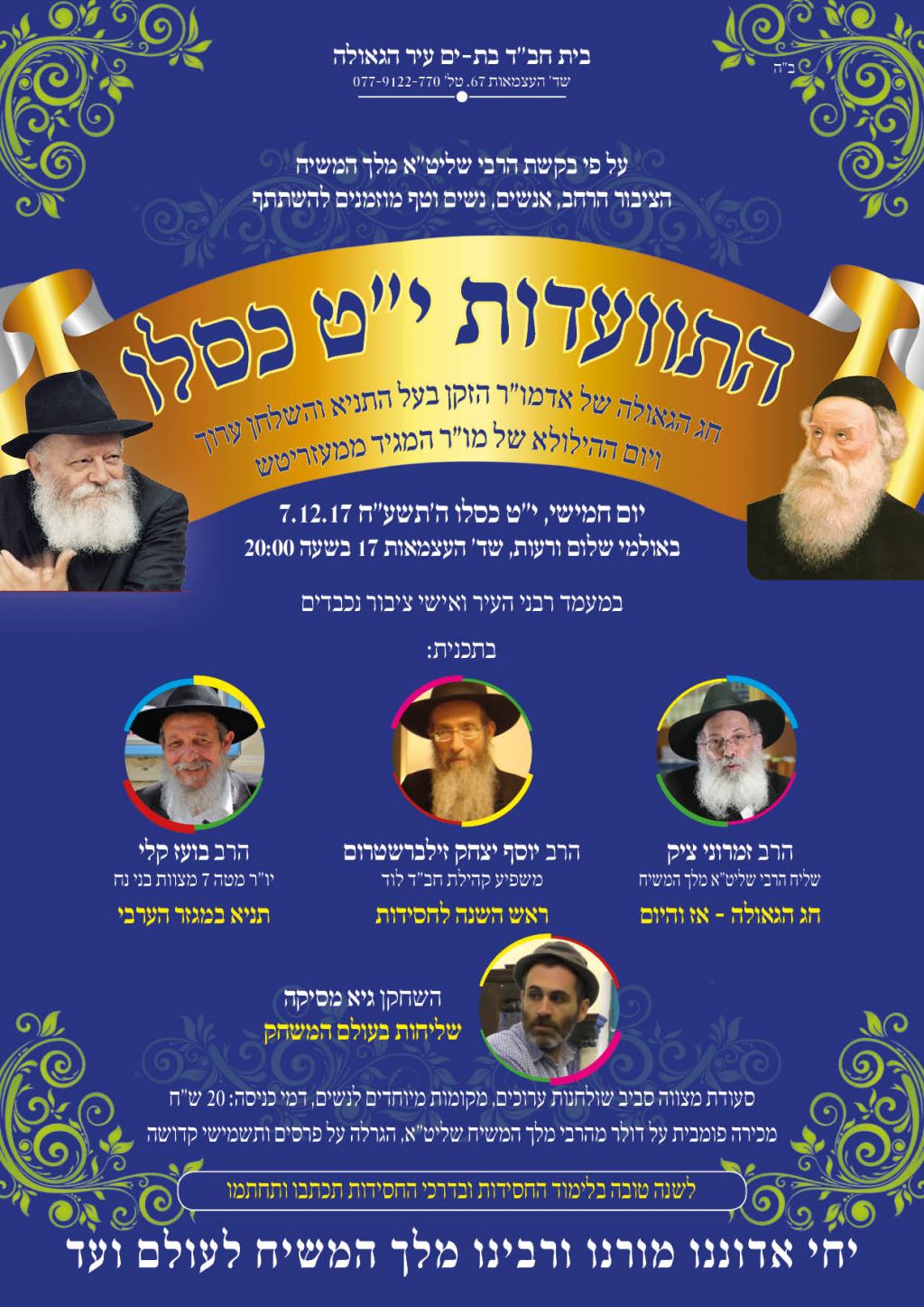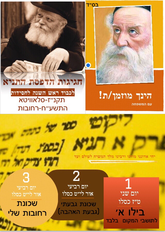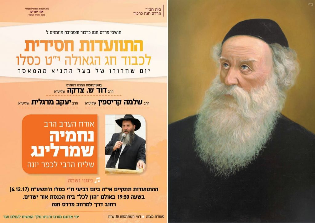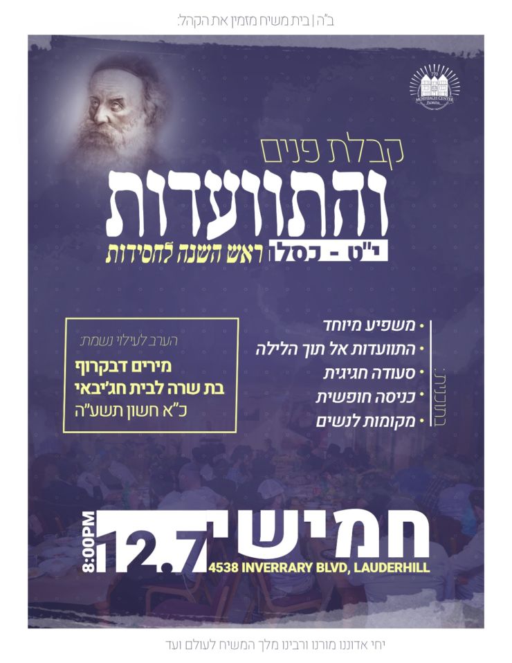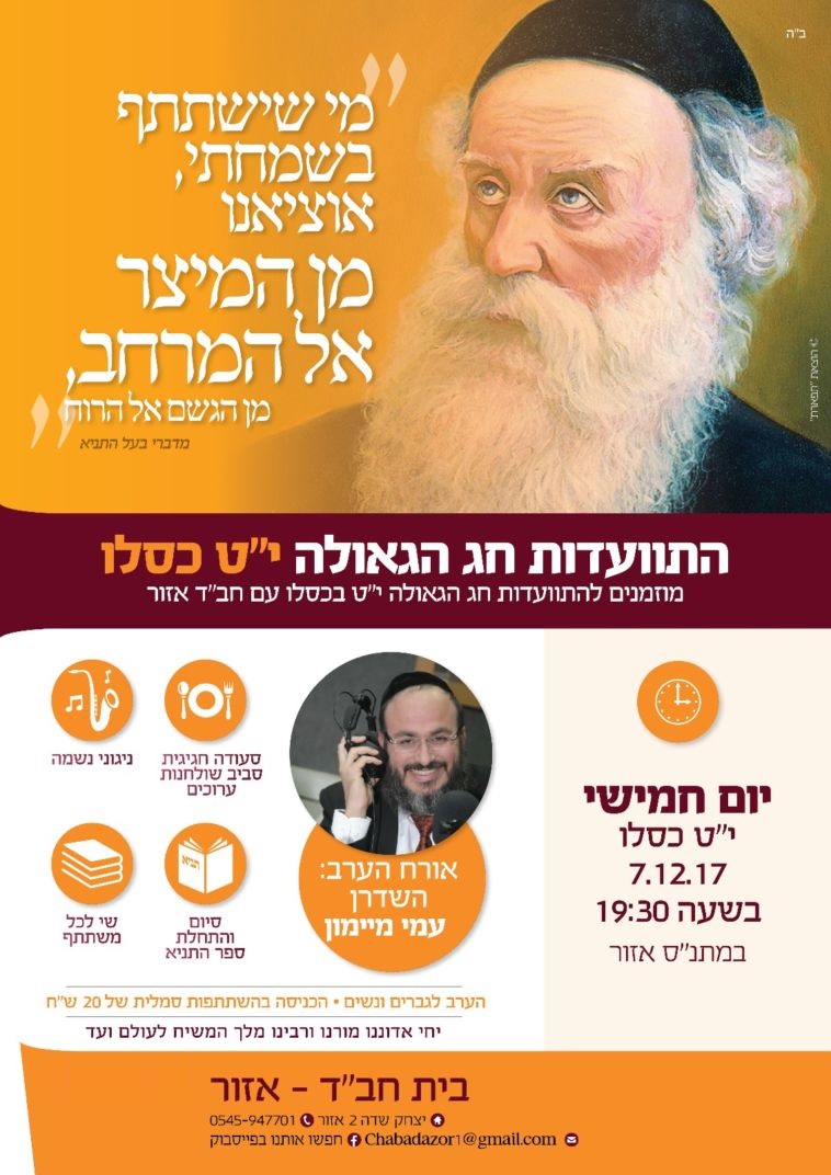 לקראת י"ט-כ' כסלו חג הגאולה של כ"ק אדמו"ר הזקן מליובאוויטש, ע"פ הוראת כ"ק אדמו"ר מלך המשיח שליט"א, חסידי חב"ד ליובאוויטש בפרט והעולם היהודי בכלל, נערכים לימים אלו ע"י עריכת התוועדויות וכד' • אתר הגאולה מגיש את המדריך המיוחד המפרסם במרוכז את כל האירועים • ניתן לשלוח לאימייל www.hageula.com@gmail.com • לצפייה