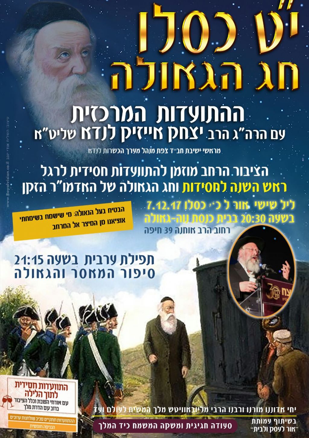 למעלה ממאה איש מכל העדות והחוגים, גדשו את בית הכנסת של שיכון חב"ד-ליובאוויטש "נווה גאולה" בחיפה וחגגו את חג הגאולה י"ט כסלו • הקהל שתה בצמא את דבריו של הגה"ח הרב יצחק אייזיק לנדא מראשי ישיבת חח"ל צפת ומראשי מערך הכשרות של אב"ד בני ברק • הכתבה המלאה