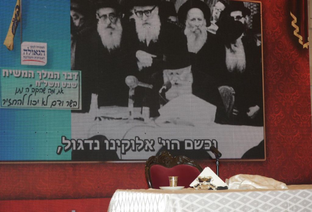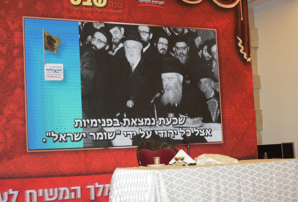 "כי אורך ימים ושנות חיים ושלום יוסיפו לך": במלאות "חיים שנה" לנשיאות כ"ק אדמו"ר מלך המשיח שליט"א, התכנסו המוני חסידי חב"ד-ליובאוויטש יחד עם עמך בית ישראל ל"התוועדות המרכזית בארץ הקודש" שנערכה סביב שולחנות ערוכים כיד המלך ב"אולמי בראשיתה המפוארים" בראשון לציון.
