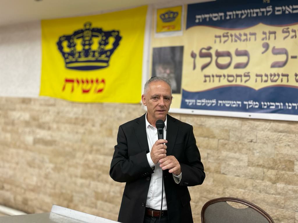 הנחה את הערב בכשרונו המיוחד הרב עו"ד אלון עמר. ראשון הדוברים שהקדים להגיע להתוועדות היה ר' צביקה ברוט ראש העיר. אחרי תפילת ערבית וניגונים, עלה לדבר הרב יצחק רחימי מבית חב"ד, וסיפר על בנו יוסף שי' שיצאו הוא וביתו עם תינוק לשליחות הרבי שליט"א מלך המשיח עם אישה ותינוק לנמיביה דרום אפריקה.