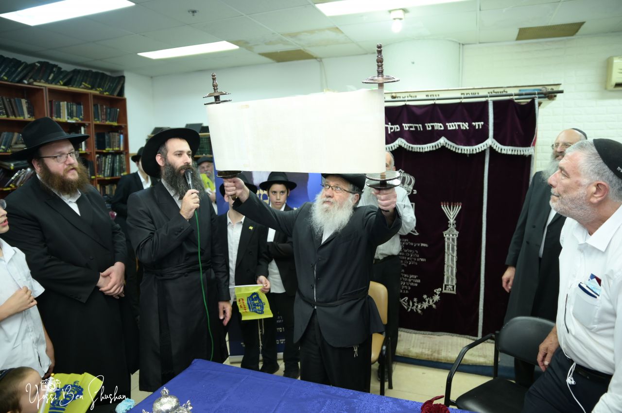 בשעה 16:00 החל מעמד כתיבת האותיות בתוך בית הכנסת של בית חב"ד בשדרות העצמאות. בכתיבת האותיות כובדו משפחת ציק, תורמים וידידי הבית חב"ד. את האירוע הנחה הרב אלעד קנטור, והמשתתפים לא חסכו באמירת 'לחיים' איש לרעהו. בסיום כתיבת האותיות נעמד הקהל להגבהת וגלילת ספר התורה, ומשם יצאו כולם לתהלוכה ססגונית לכבודה של תורה.