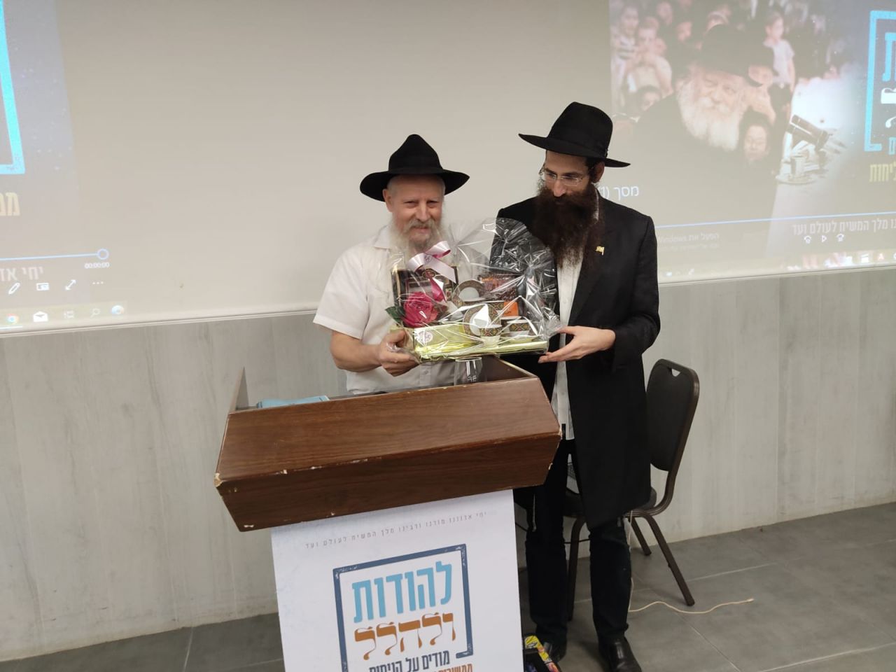 לקראת סיום הערב הרשמי כל הנוכחים צפו בוידאו ושמעו סיפורים על בית חבד מפי לוי ציק שביקר שם פעמים רבות. והתוועדות סוחפת נמשכה עד לשעות הקטנות של הלילה.
