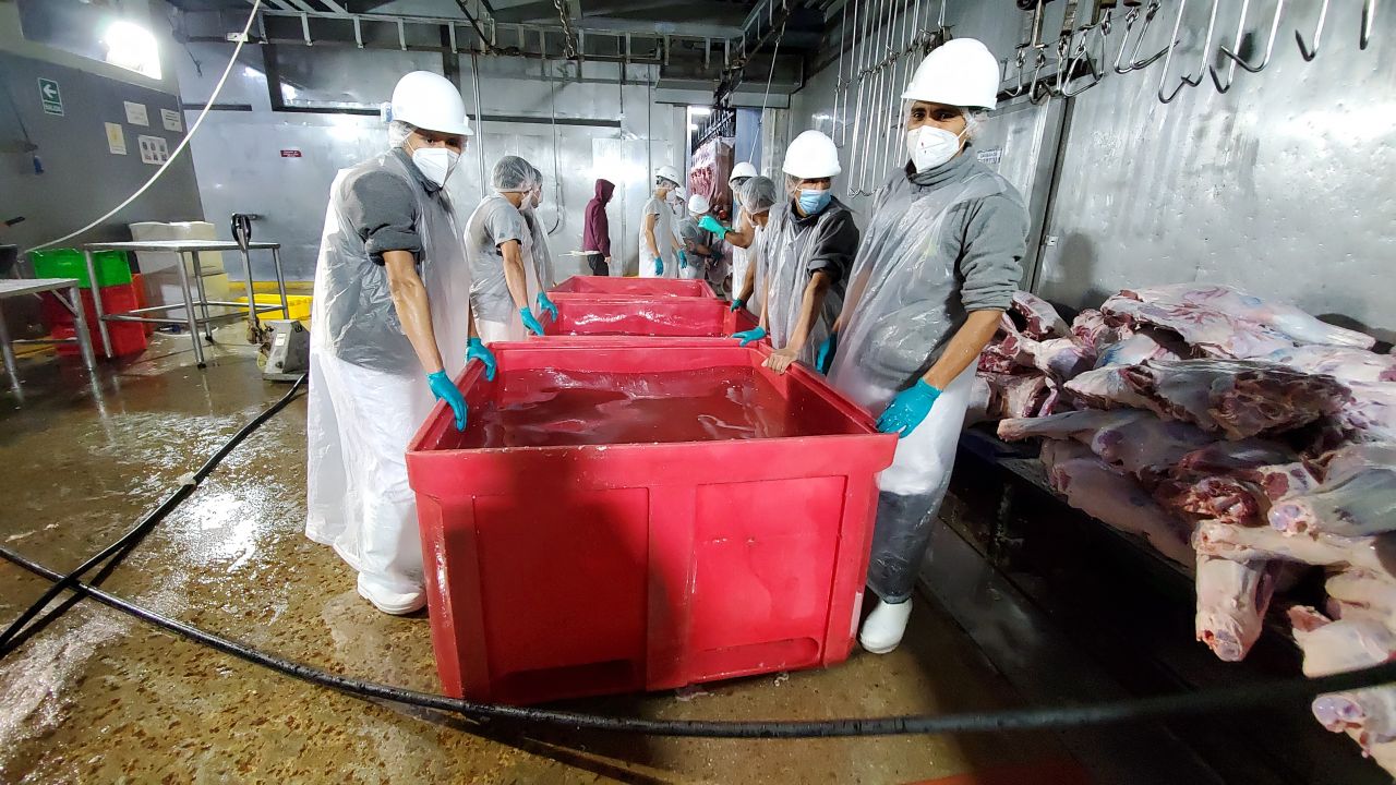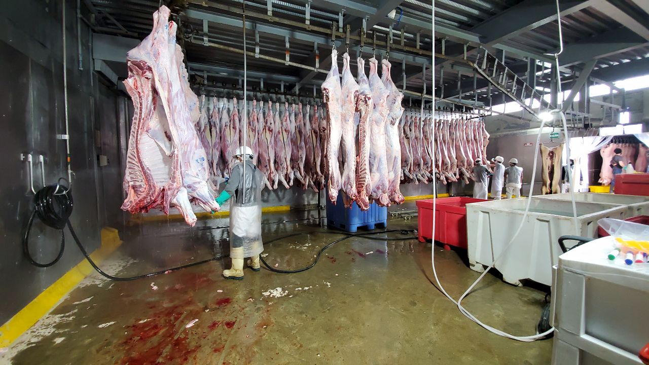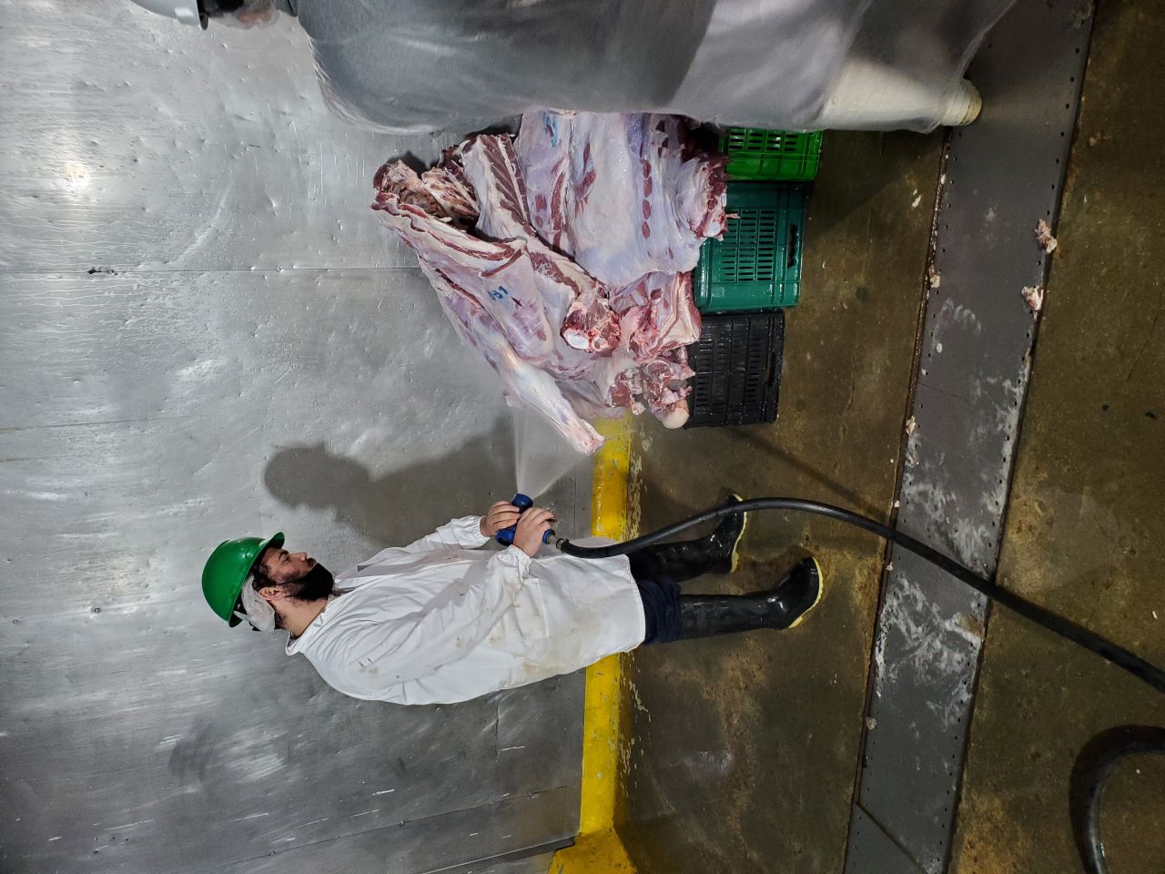 לקראת השחיטה, הגיעו הרבנים למפעל לראות את השחיטה, ערכו בדיקת ראייה ובדיקת הסכינים של השו"ב והשחיטה של חב"ד ליובאוויטש פרו.