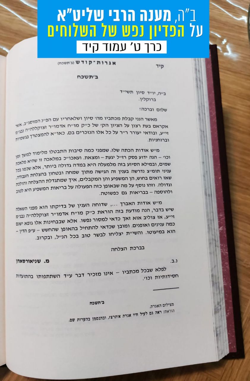 השלוחים כתבו פדיון נפש כללי ומענה הרבי שליט"א מלך המשיח בכרך ט' עמוד קיד: "מאשר הנני קבלת מכתביו… עם הפ"נ… ובוודאי יעורר ר"ר…"
