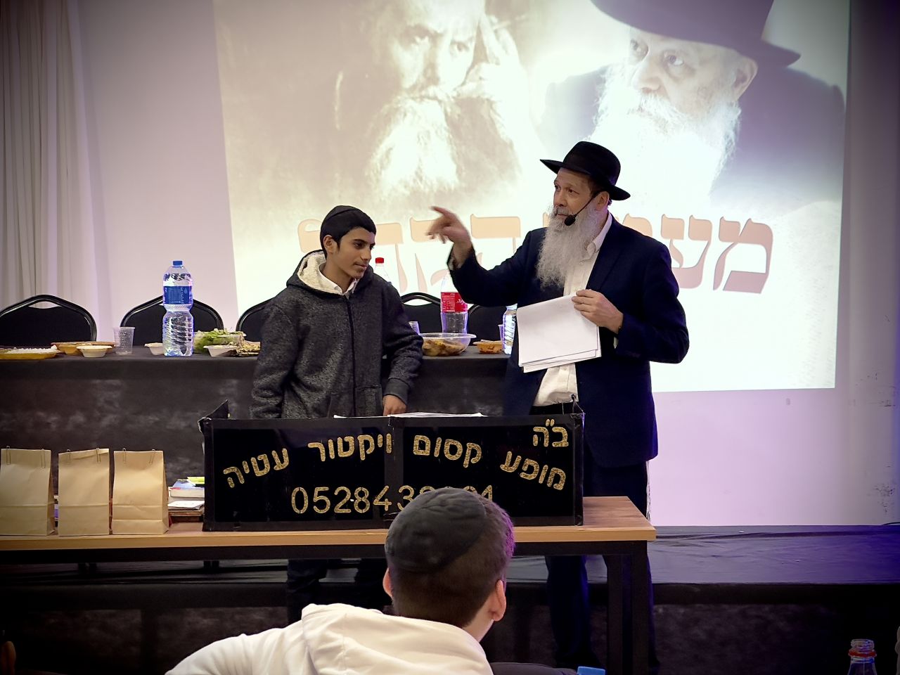 במרכז הכנס רותקו התלמידים לרב ויקטור עטיה - שליח הרבי שליט"א מלך המשיח בחברון, שסיפר את סיפור האישי והמצמרר המלא באמונה, בשילוב מופע קסמים וטלפתיה.
