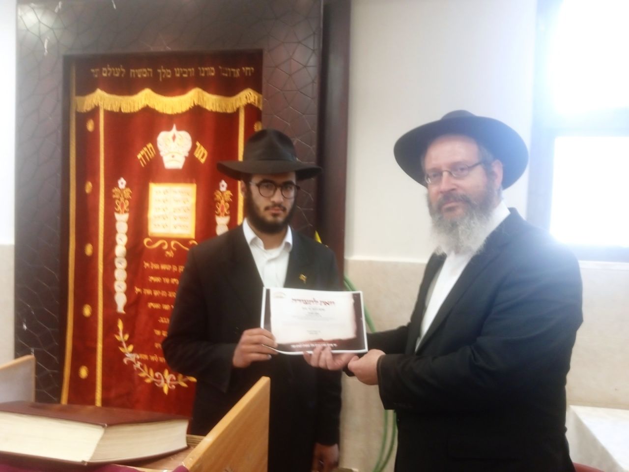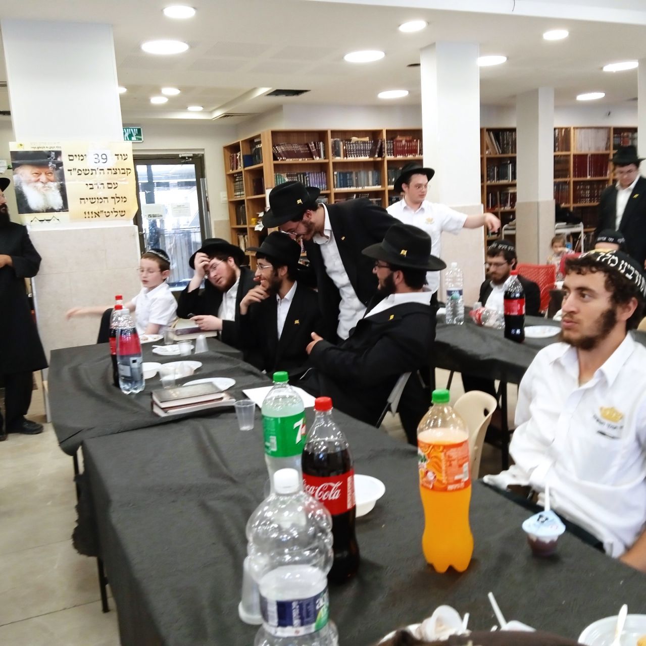 הרה"ח ר' שמואל שי' נוטיק, נו"נ בעיונא, שידיו רב לו בהנחלת אהבת התורה לתמימים – פותח באמירת פרק התהלים של הרבי שליט"א ולאחריו מזמין המנחה הרה"ח אביחי שי' רוטשילד, משגיח בסדר חסידות, את הת' שלום דובער שי' ברוך לסיים את המסכת ולקבל את תעודת 'חתן תורה'. מיד לאחריו מוזמן ראש הישיבה הרב שמעון שי' ויצהנדלר לומר את ה'הדרן', הוא מקשר את הדברים לסיום הראשון שעשו בליובאוויטש על מסכת גיטין בשנת תד"ש ול'הדרן' מיוחד ששלח כ"ק אדמו"ר מוהריי"צ לרגל החגיגה.