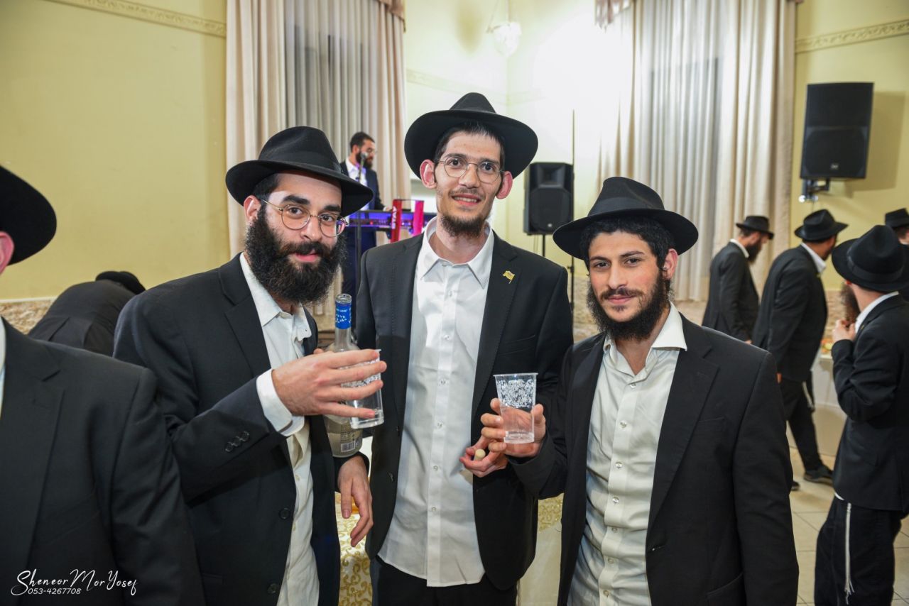 קהל רב הגיע לשמח את החתן והכלה, הגה״ח הרב מאיר סויסא שליט״א, רב אזורי רמת נגב ורב שכונה א׳, קיים את מנהגי התנאים לחתן והכלה.