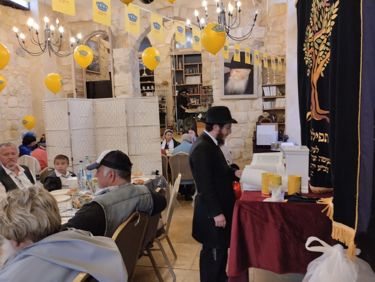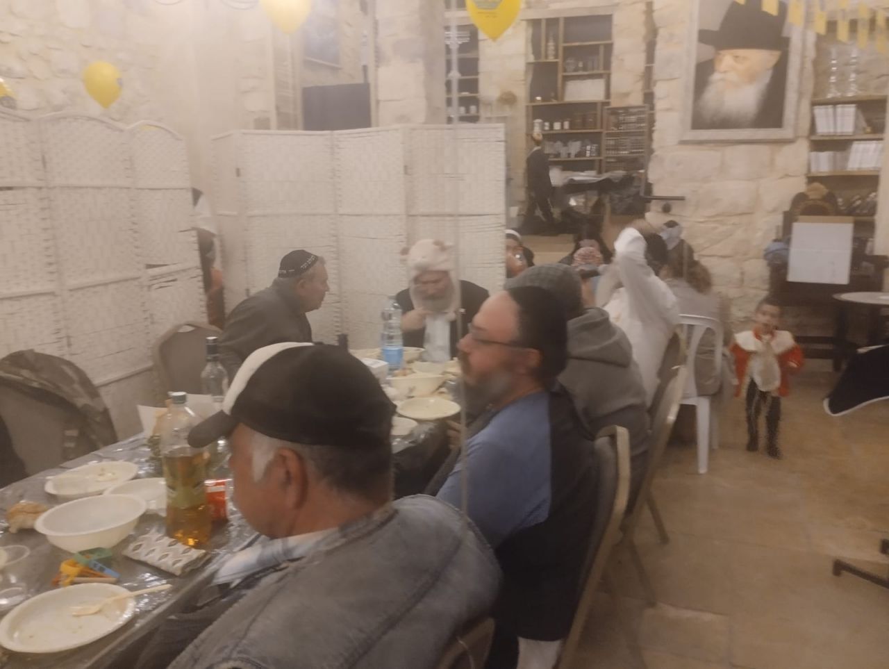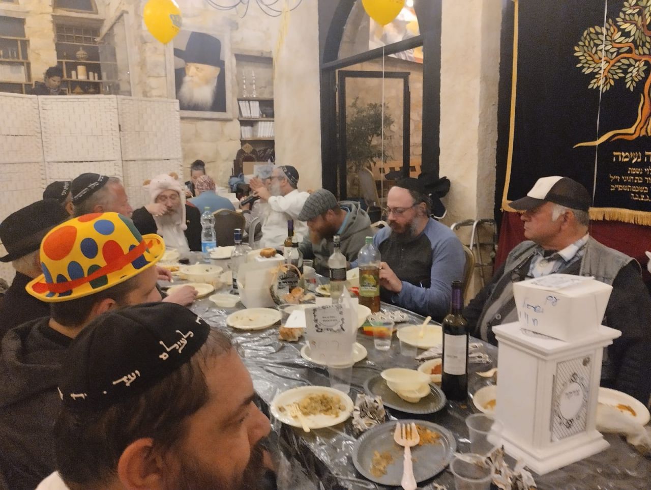 בשעה 16:30, התקיימה סעודת חג ומשתה פורים בבית חב"ד בעיר העתיקה בהשתתפות מאות תושבי העיר. בתחילת האירוע, שליח הרבי שליט"א מלך המשיח ומנהל בית חב"ד בעיר העתיקה הרב אליהו סנגאוי, קרא את מגילת אסתר. אורח מיוחד, המשפיע החסידי הרב גיא מלכה מקרית מלאכי דיבר על התוכן הפנימי של חג פורים ושליח הרבי שליט"א מלך המשיח ומנהל בית חב"ד מרכז ההתגלות בשכונת נווה זאב הרב יגאל לוטקין תרגם את דבריו לשפה הרוסית לטובת עשרות עולים חדשים מרוסיה ואוקראינה שהשתתפו באירוע המרגש.