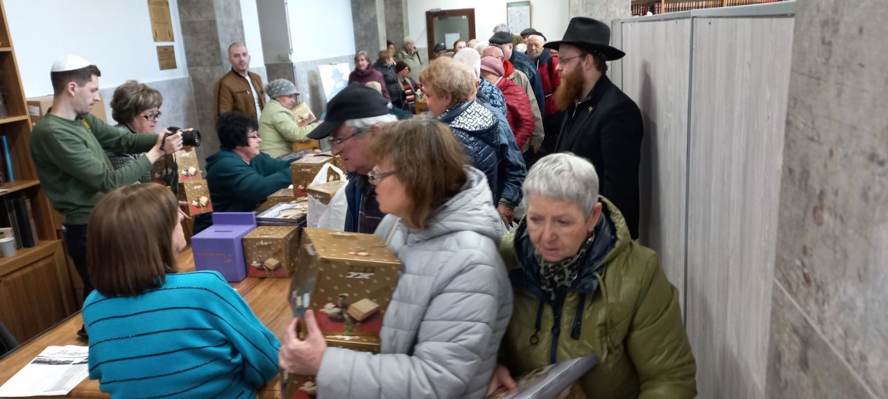 לקראת חג הפסח הגיעו מאות יהודים מרחבי העיר לקבל סלי מזון כשר לפסח, שליחי הרבי שליט"א מלך המשיח קיבלו את פניהם, והרב הראשי למולדובה, הרב מנדי אקסלרוד נשא לפניהם דברים מעניני החג. רבים מהבאים ישתתפו בעז"ה בסדרים הציבוריים שייערכו בבית הכנסת ובעיר.