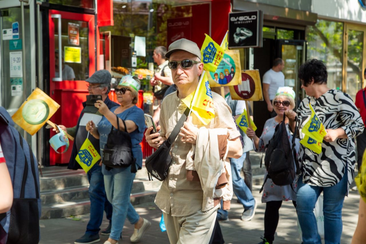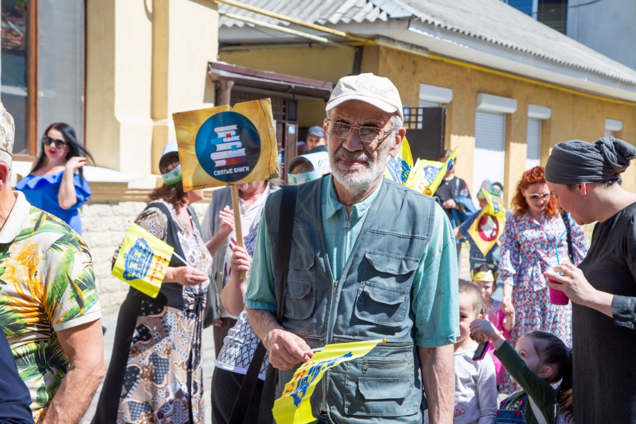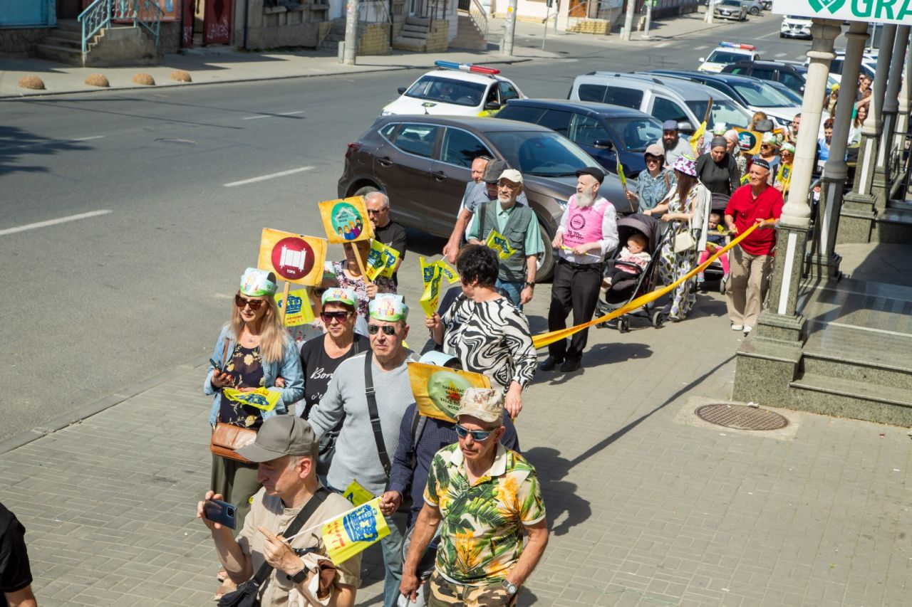 בראש התהלוכה שלט ברומנית, בנוסף לשלטים ברוסית ועברית, ודגלי משיח.