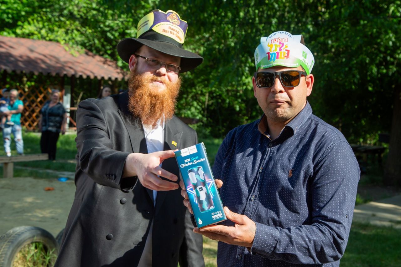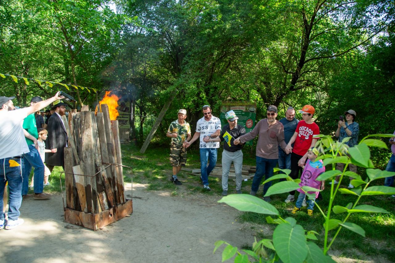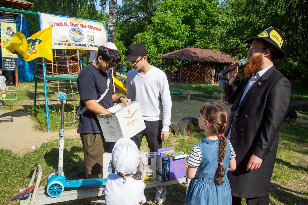 בפארק - יושבים ליד שולחנות ערוכים, אוכלים "על האש" כמנהג היום, מדליקים מדורה, רוקדים, והילדים אומרים פסוקים, ולבסוף - הגרלת פרסים.
