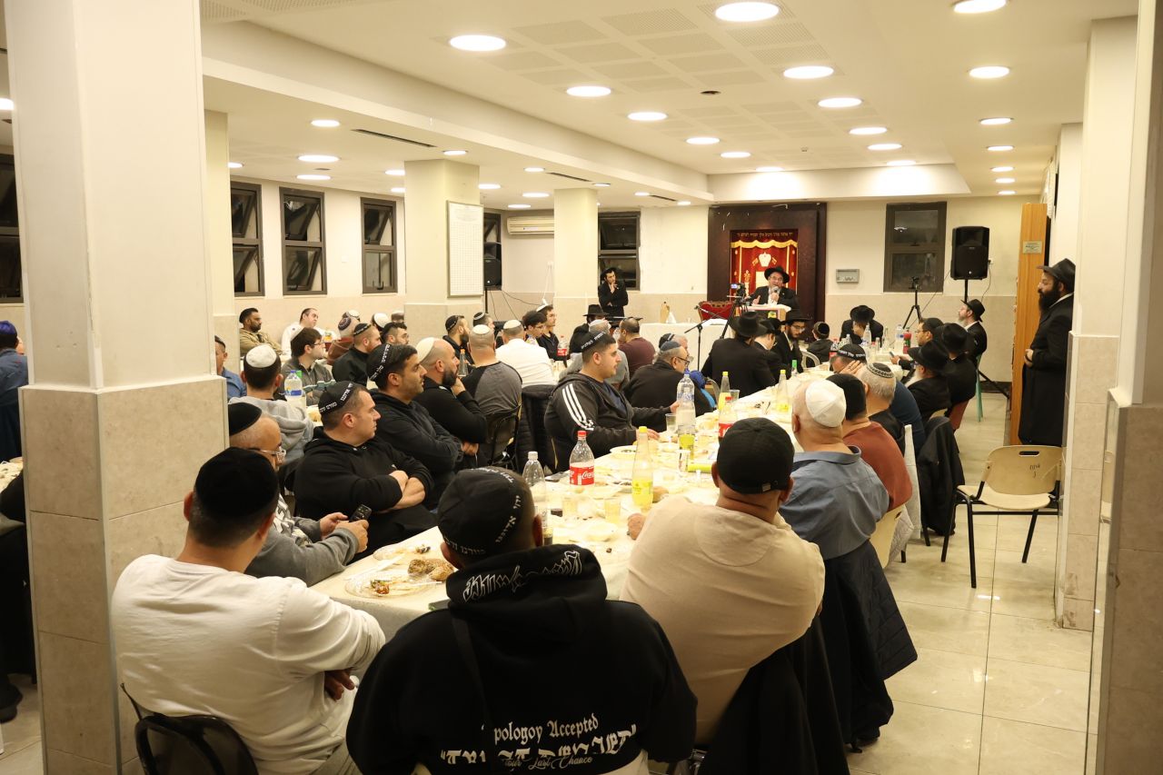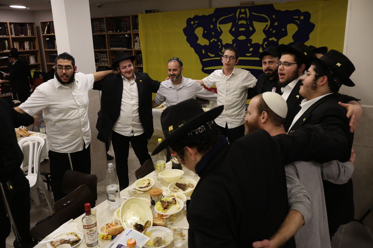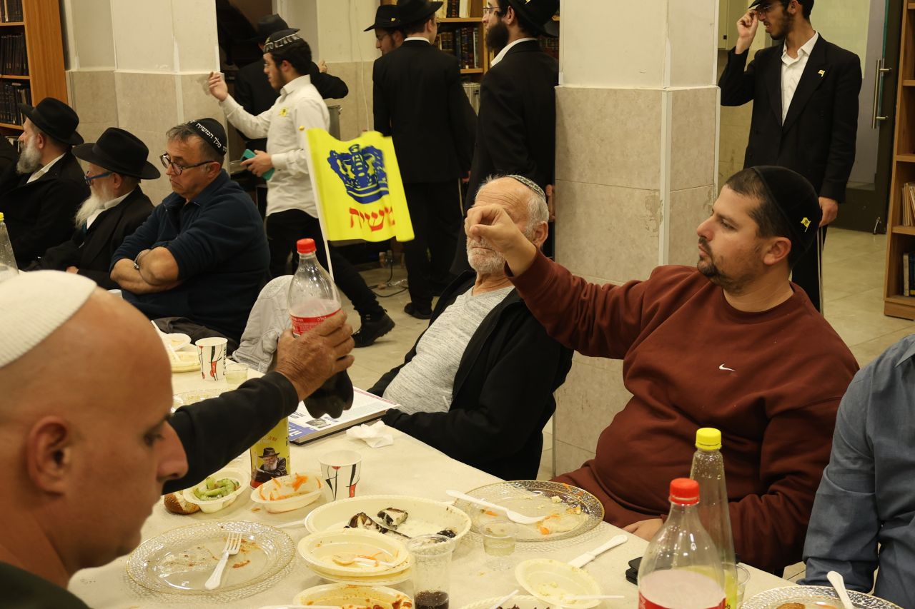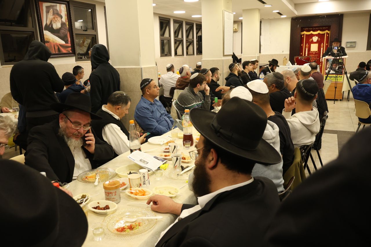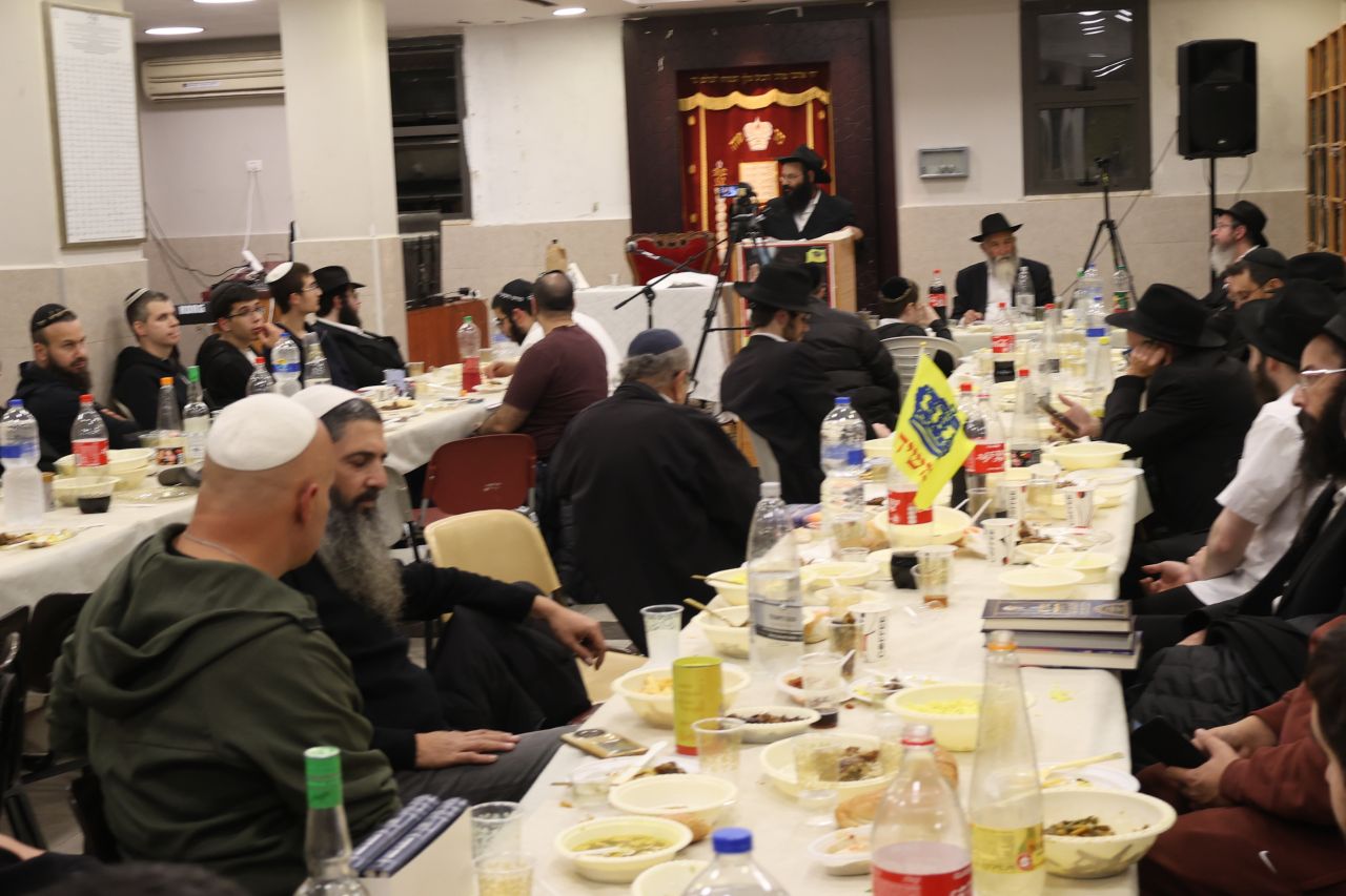 לאחר ריקודי השמחה, התיישבו כולם להתוועדות מיוחדת עם הרב חיים ששון שנמשכה עד לשעות הקטנות של הלילה.