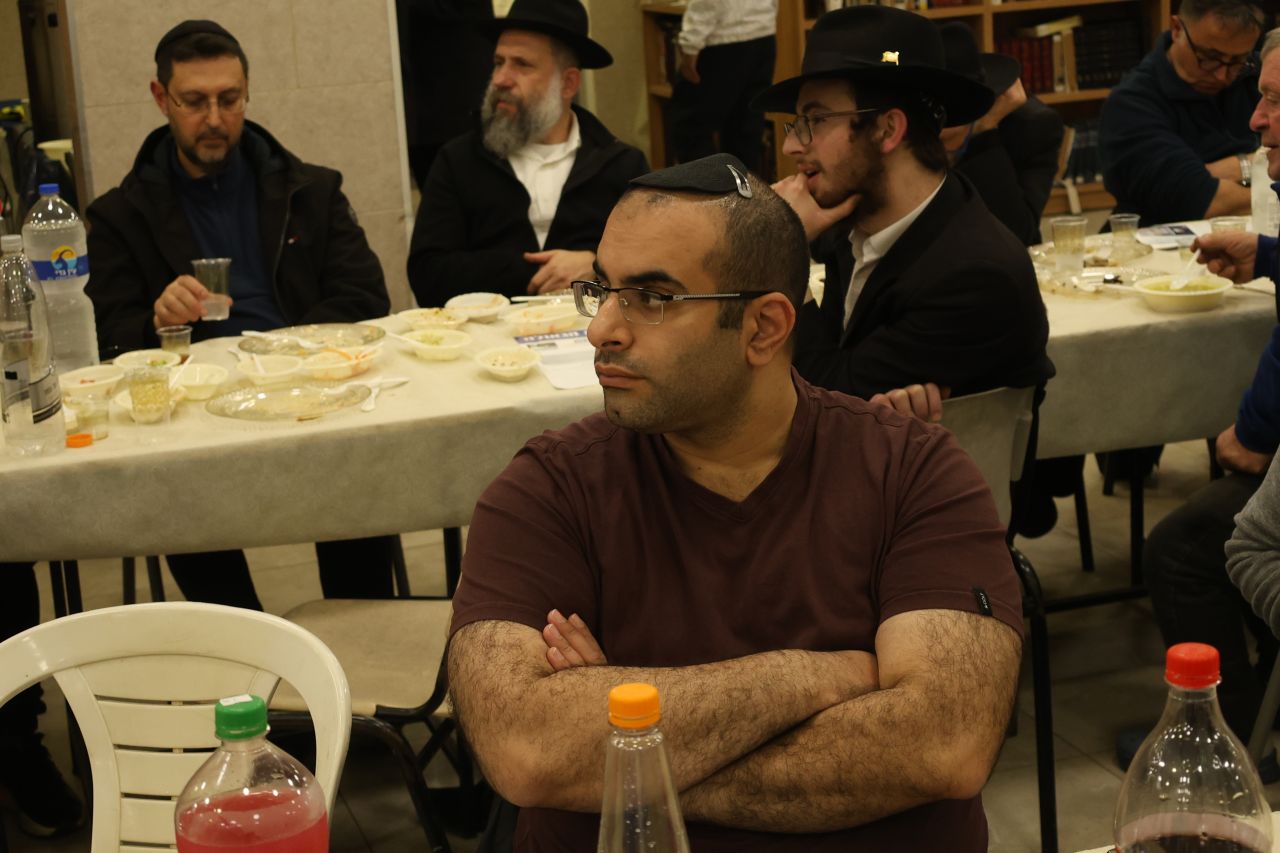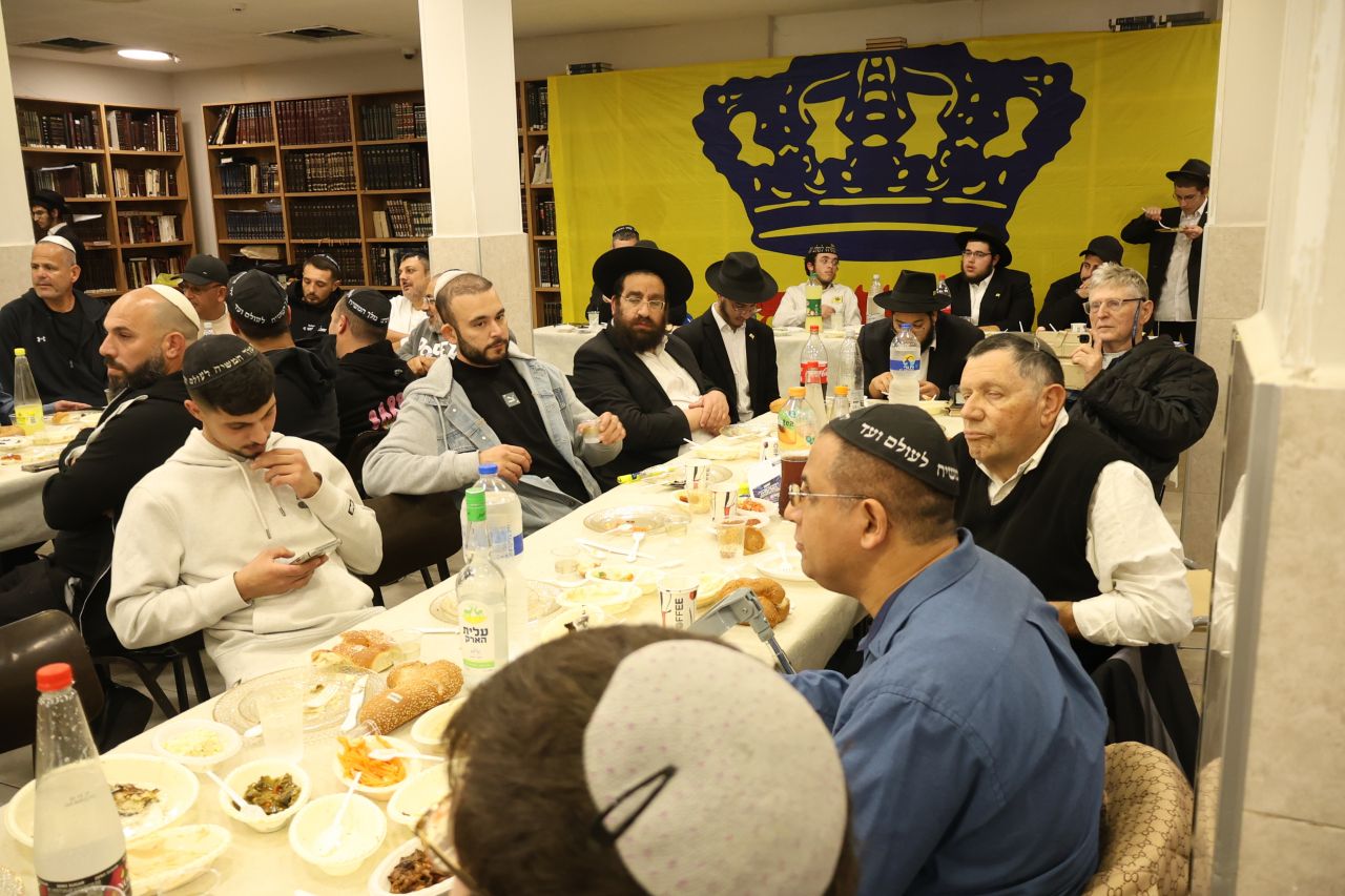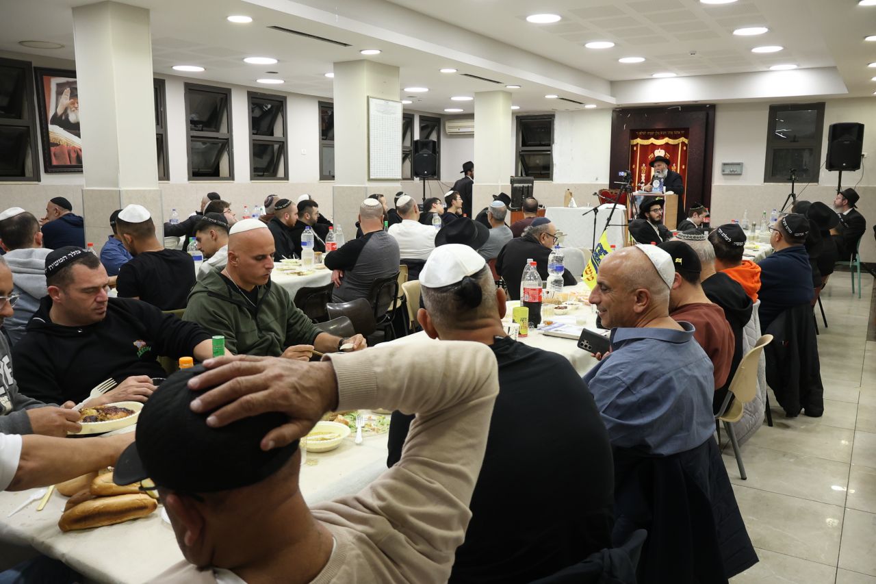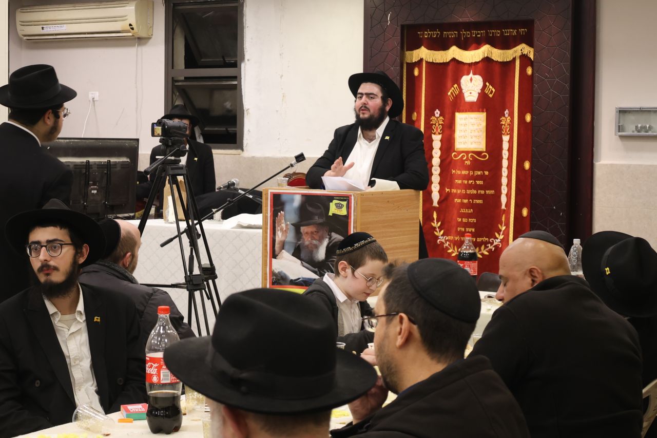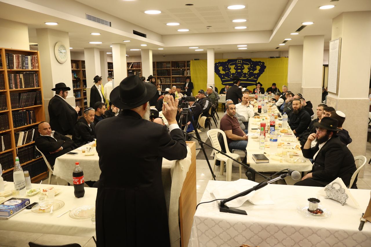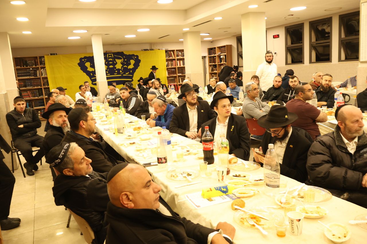 לאחר ריקודי השמחה, התיישבו כולם להתוועדות מיוחדת עם הרב חיים ששון שנמשכה עד לשעות הקטנות של הלילה.