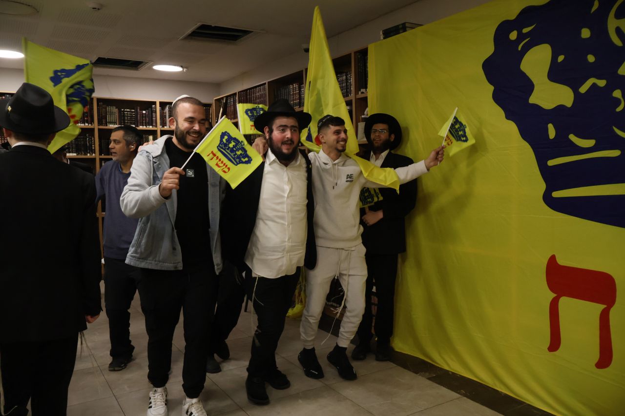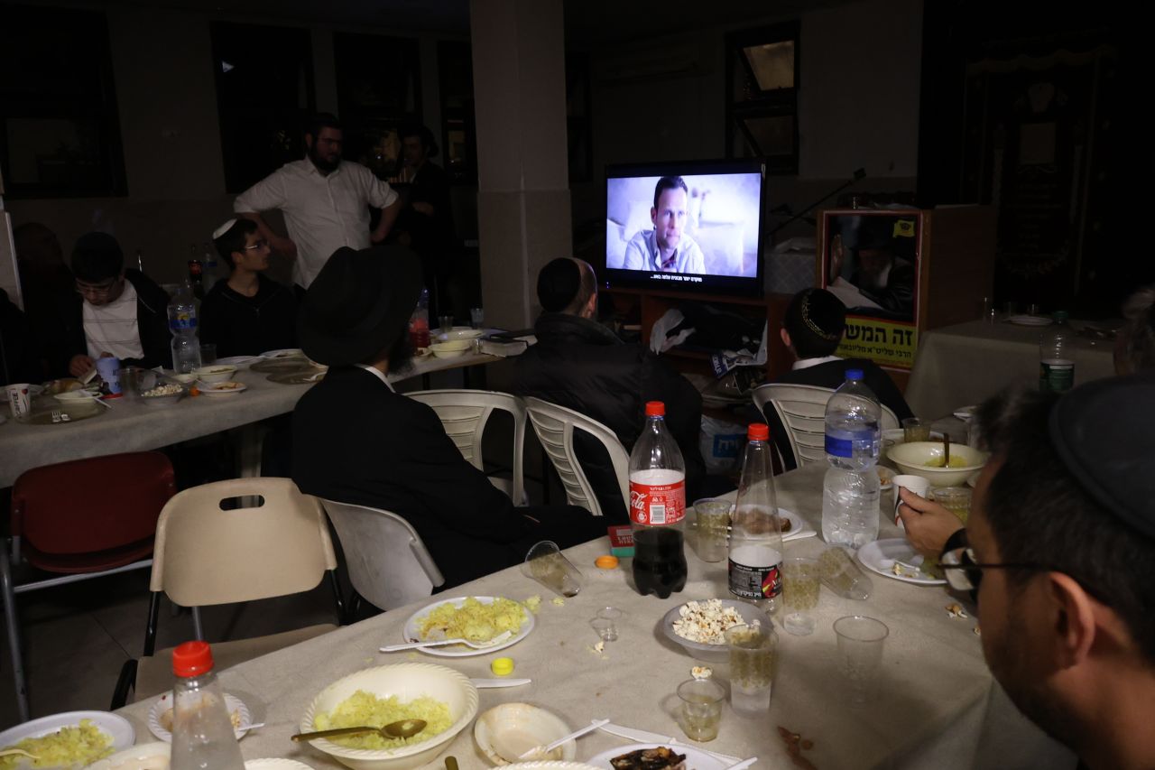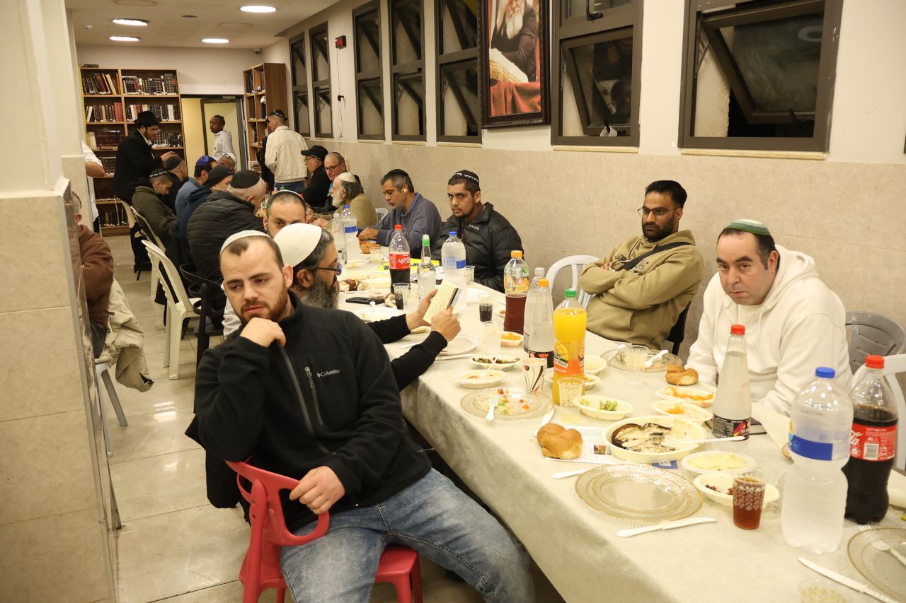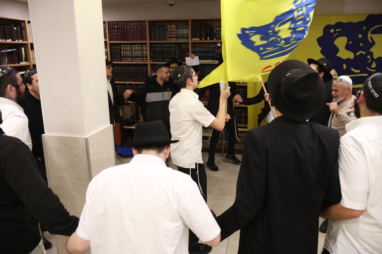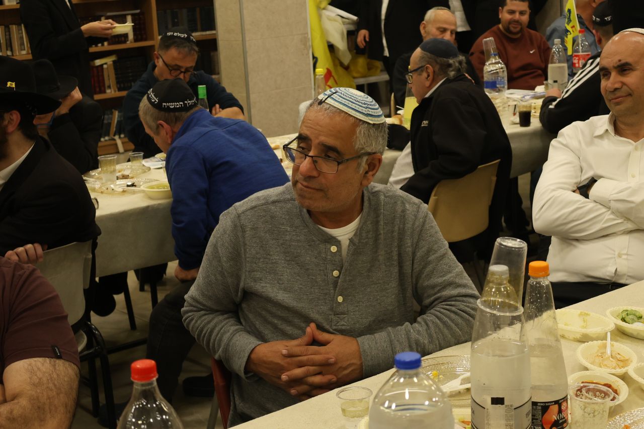 לאחר ריקודי השמחה, התיישבו כולם להתוועדות מיוחדת עם הרב חיים ששון שנמשכה עד לשעות הקטנות של הלילה.