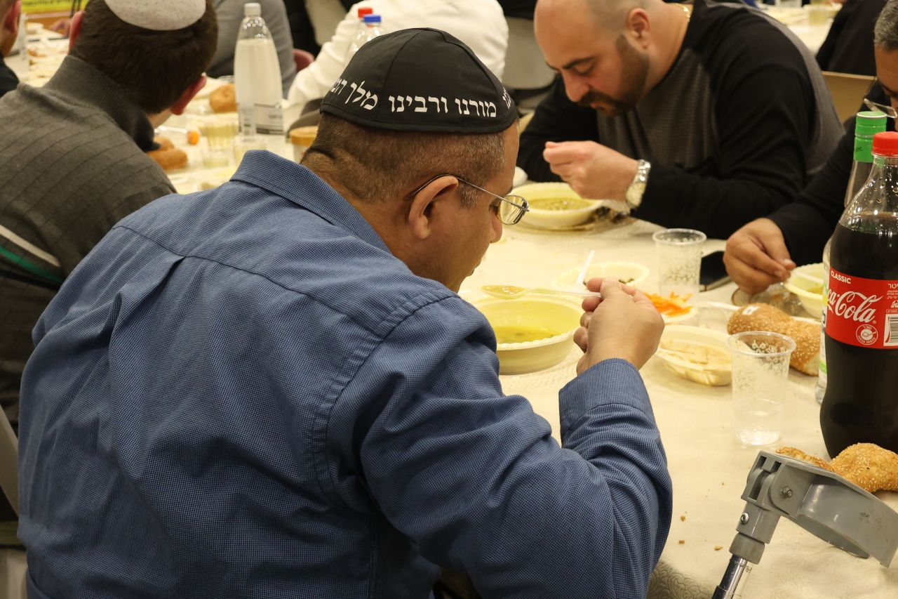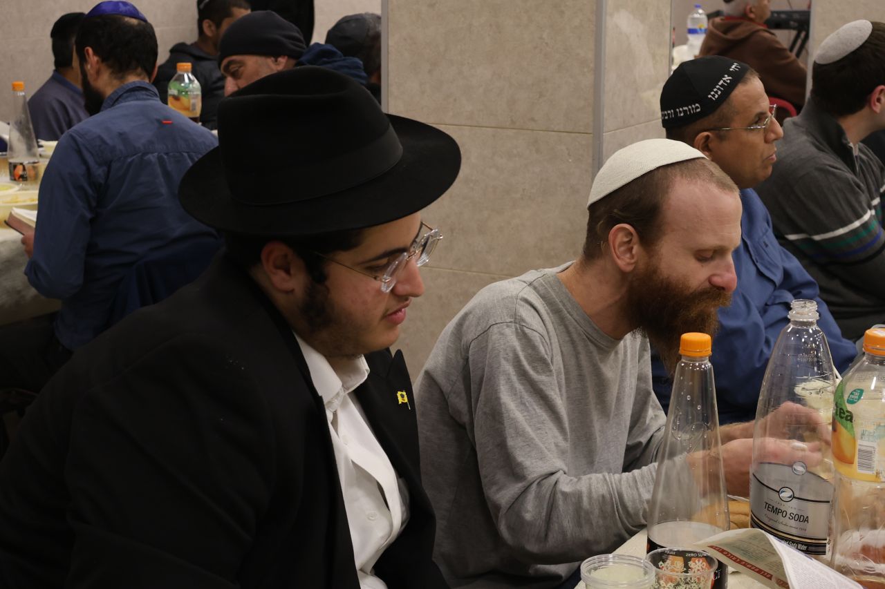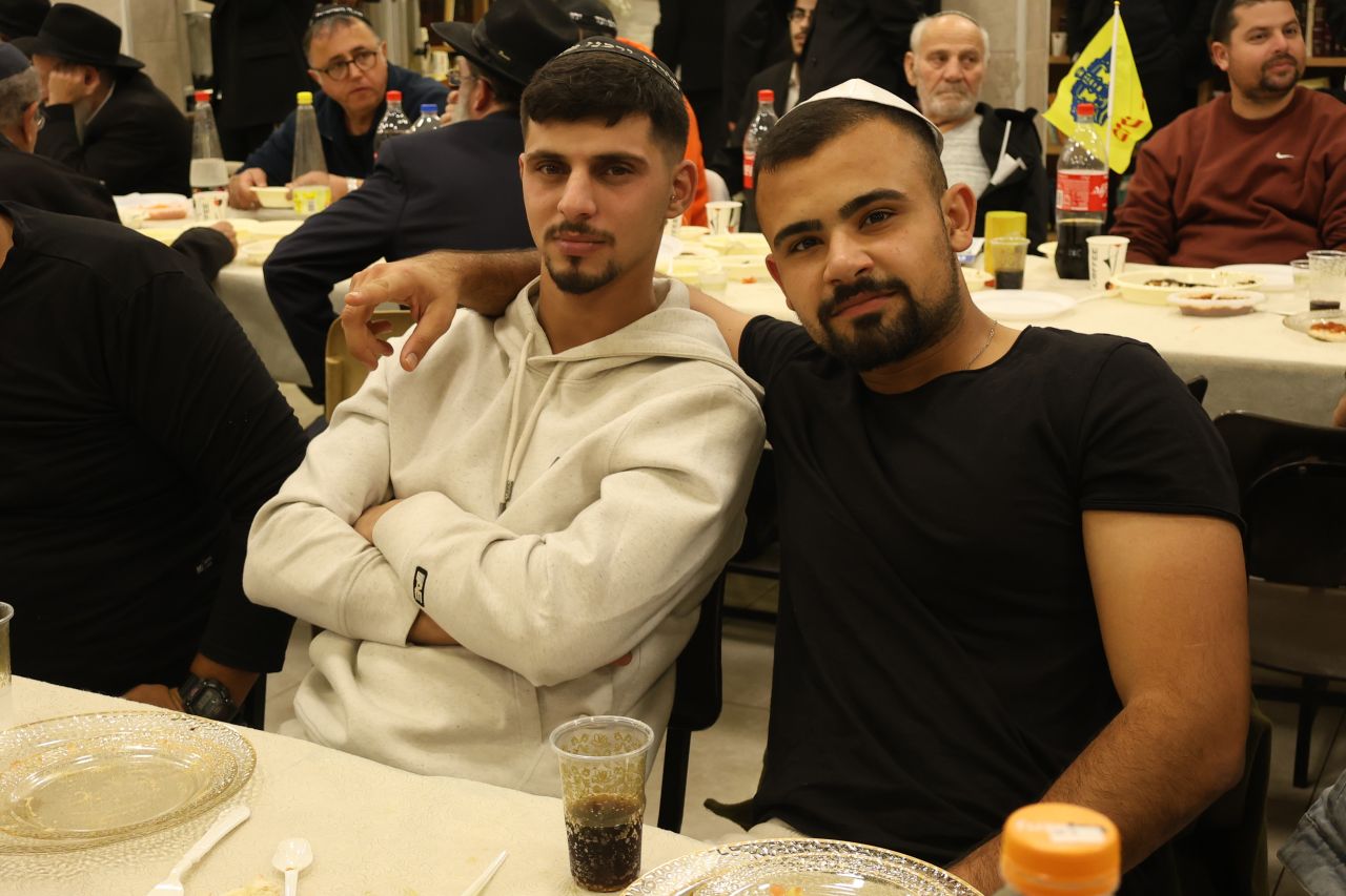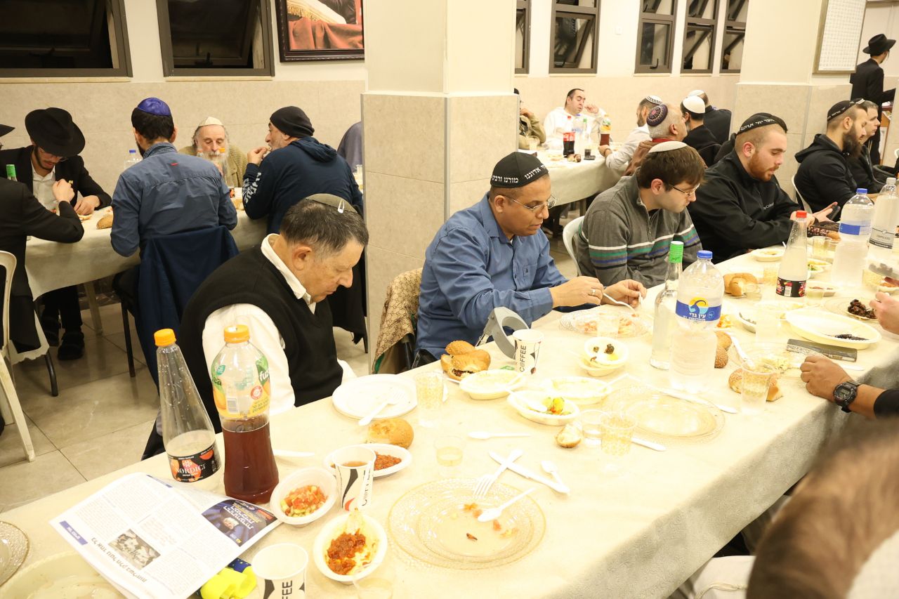 לאחר הריקודים הסוערים, הקהל התפנה ליטול את ידיו לסעודת המצווה ולגשת לאכול מהשפע הרב שהוגש על השולחנות.