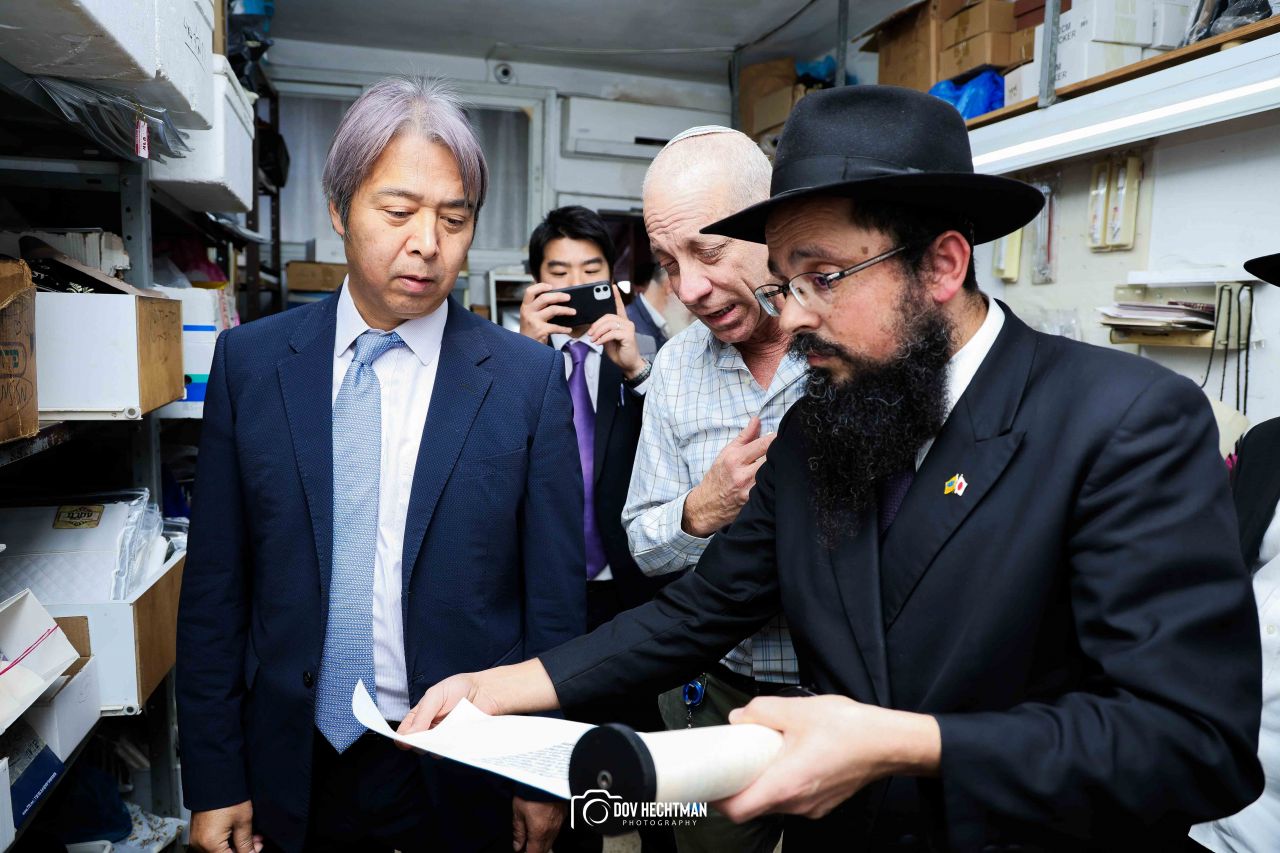 שליח הרבי שליט"א מלך המשיח והרב הראשי ליפן הרב בנימין אדרעי הביא את שגריר יפן בישראל מר אראי יוסוקה לביקור מיוחד בבית אגודת חסידי חב״ד – 770 ובמאפיית מצות בכפר חב"ד.
