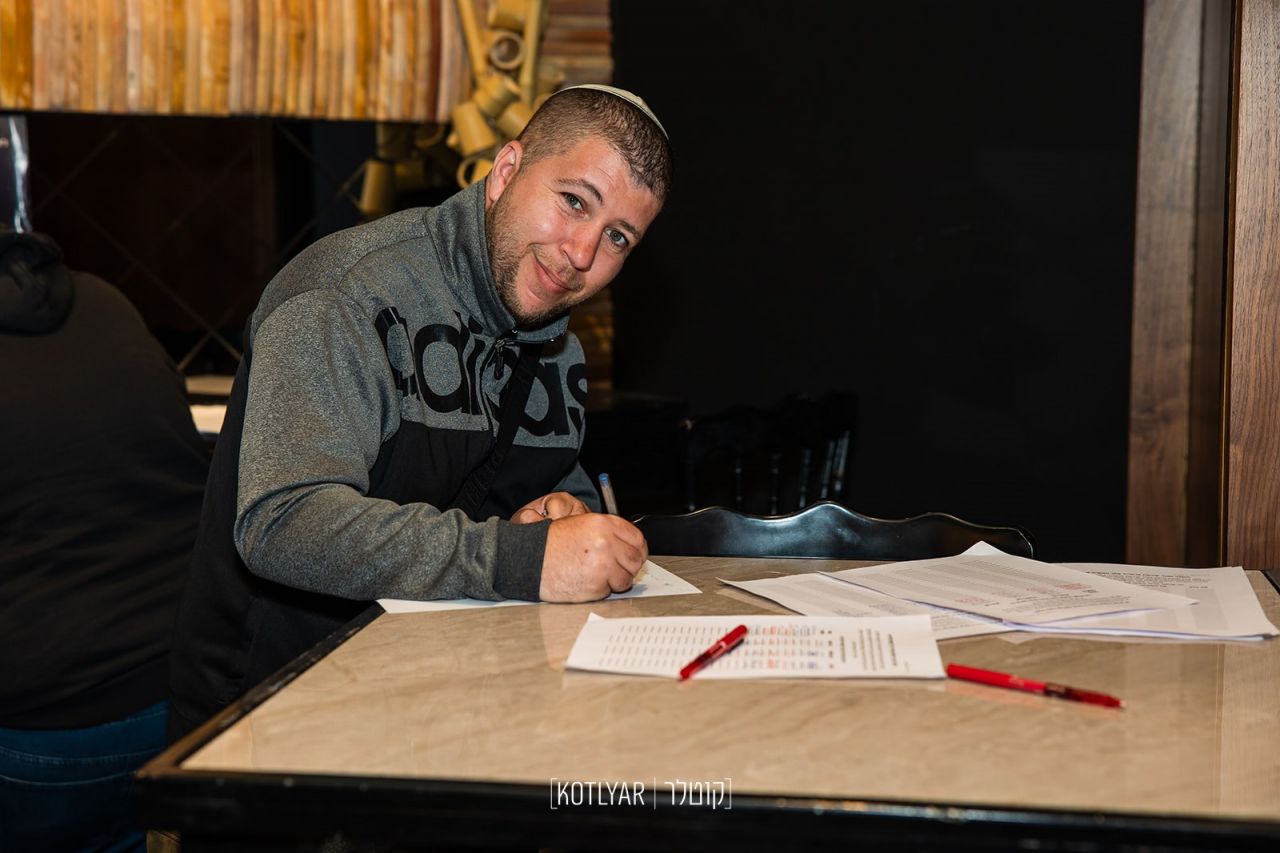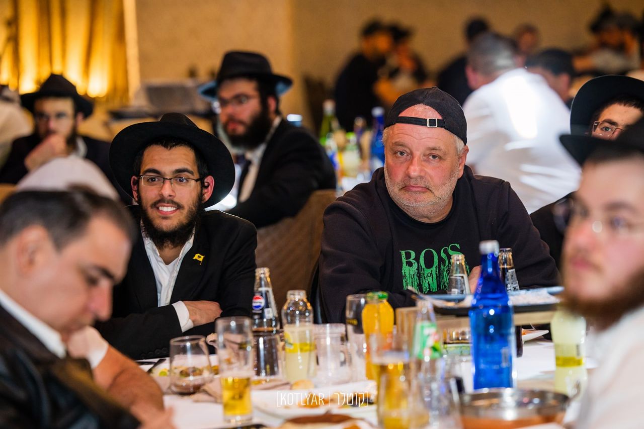 בסיום הערב התיישבו המקורבים והתמימים להתוועדות חסידית סוערת עם הרב עופר מיידובניק.