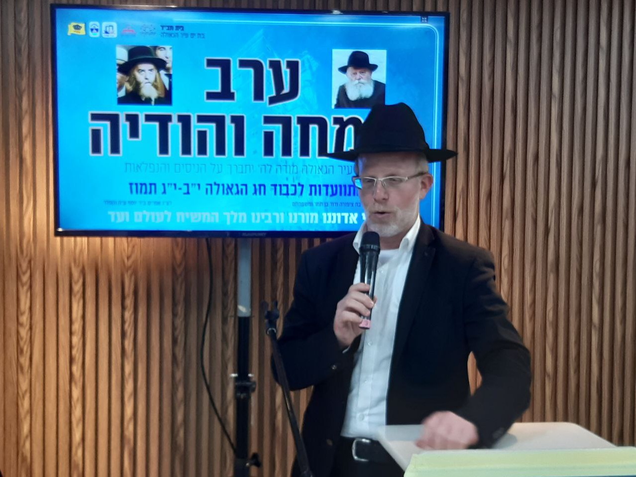 את הערב הנחה בחן חסידי עו"ד הרב אלון עמר, ובפתיחתו נשמעו דברי קודש מתוך שיחת "דבר מלכות" של הרבי שליט״א מלך המשיח, שהושמעו על ידי השליח לשכונת ניצנה בעיר, הרב פסח שיפמן.