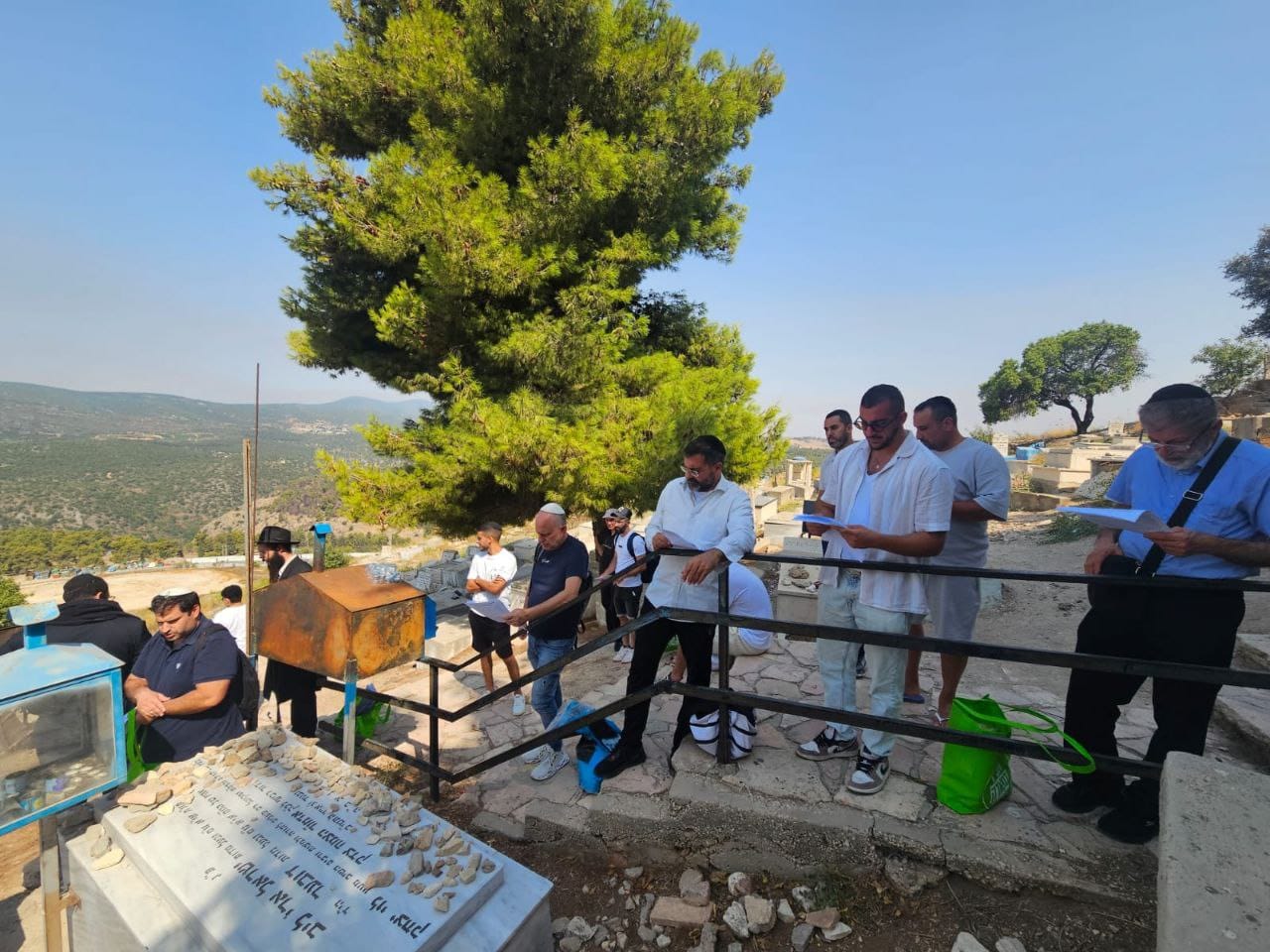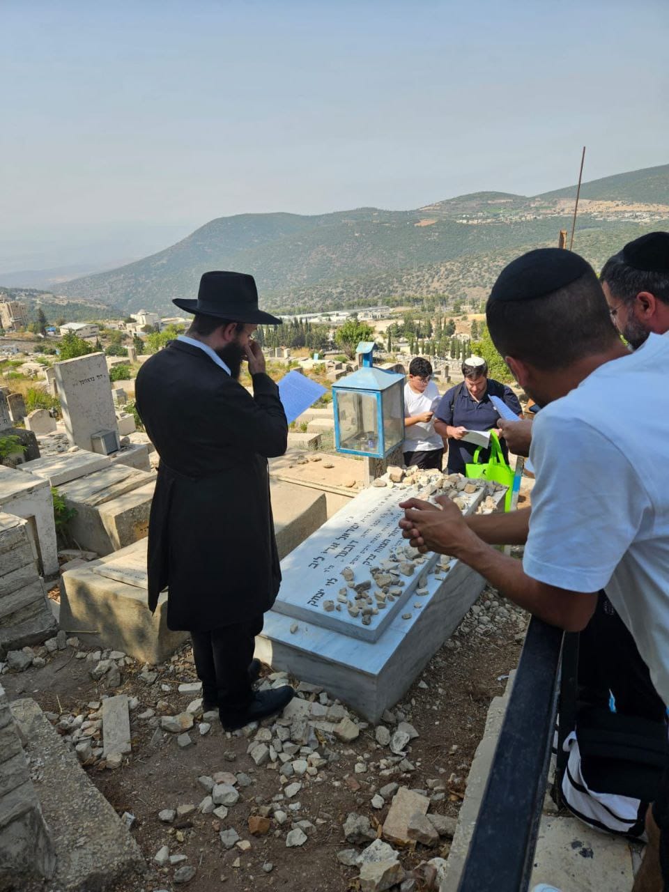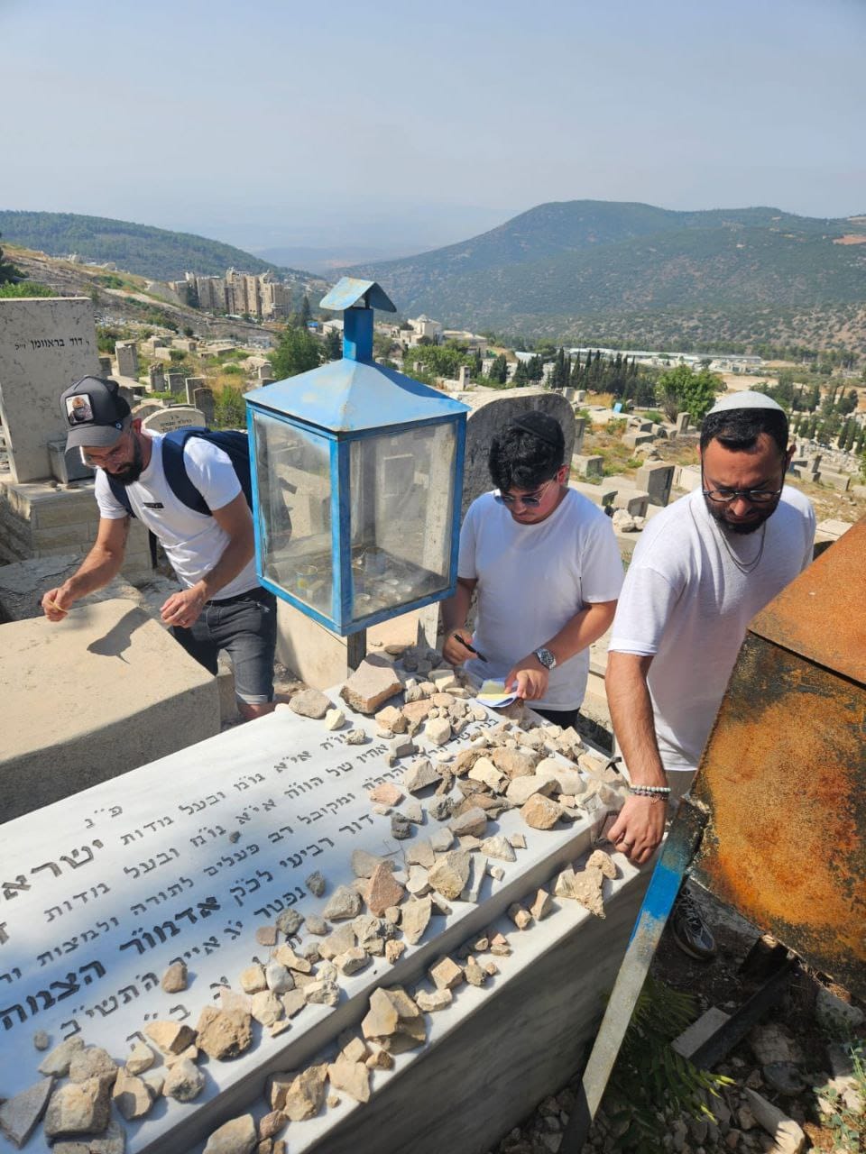 המסע נפתח בבית העלמין בצפת, בתפילה על ציון קברו של אח הרבי – על-פי הוראת ובקשת הרבי פעמים מספר לעלות לציון אחיו ביום הילולת אביהם. קדמה לכך טבילה במקווה האר"י הקדוש – כאשר לחלק מהמשתתפים זו הפעם הראשונה של טבילה במקווה, ועוד במעיין המיוחד הזה! – שהייתה גם הכנה להתעוררות רוחנית מחודשת לקראת השנה החדשה - 40 יום לפני ראש השנה. על הציון התעכבו ללימוד בצוותא של חלק ממאמר חסידות שאמר הרבי, בקשר ליום ההילולא כ' אב.