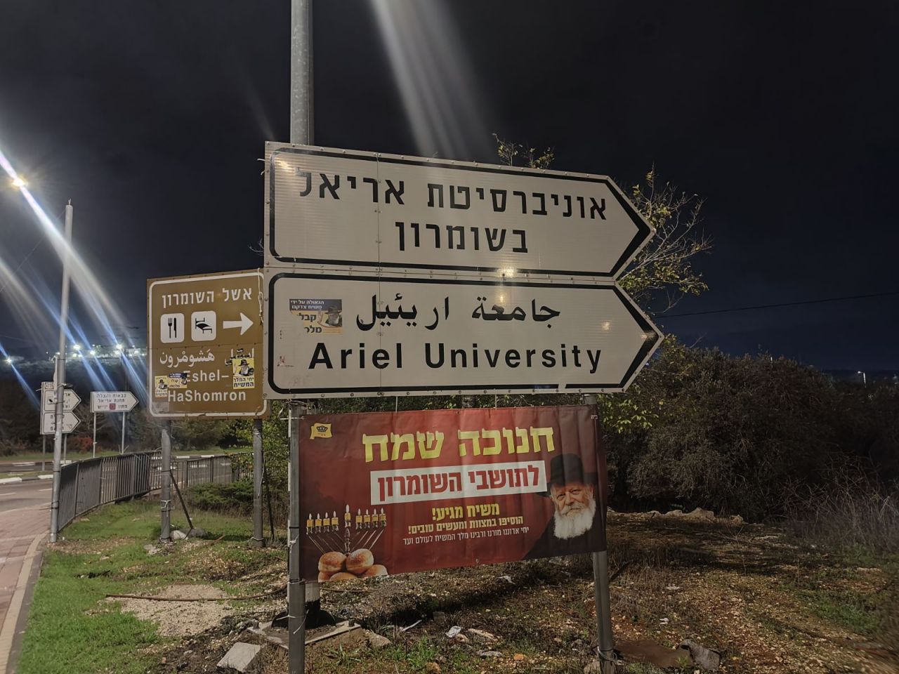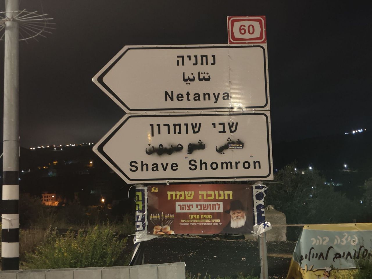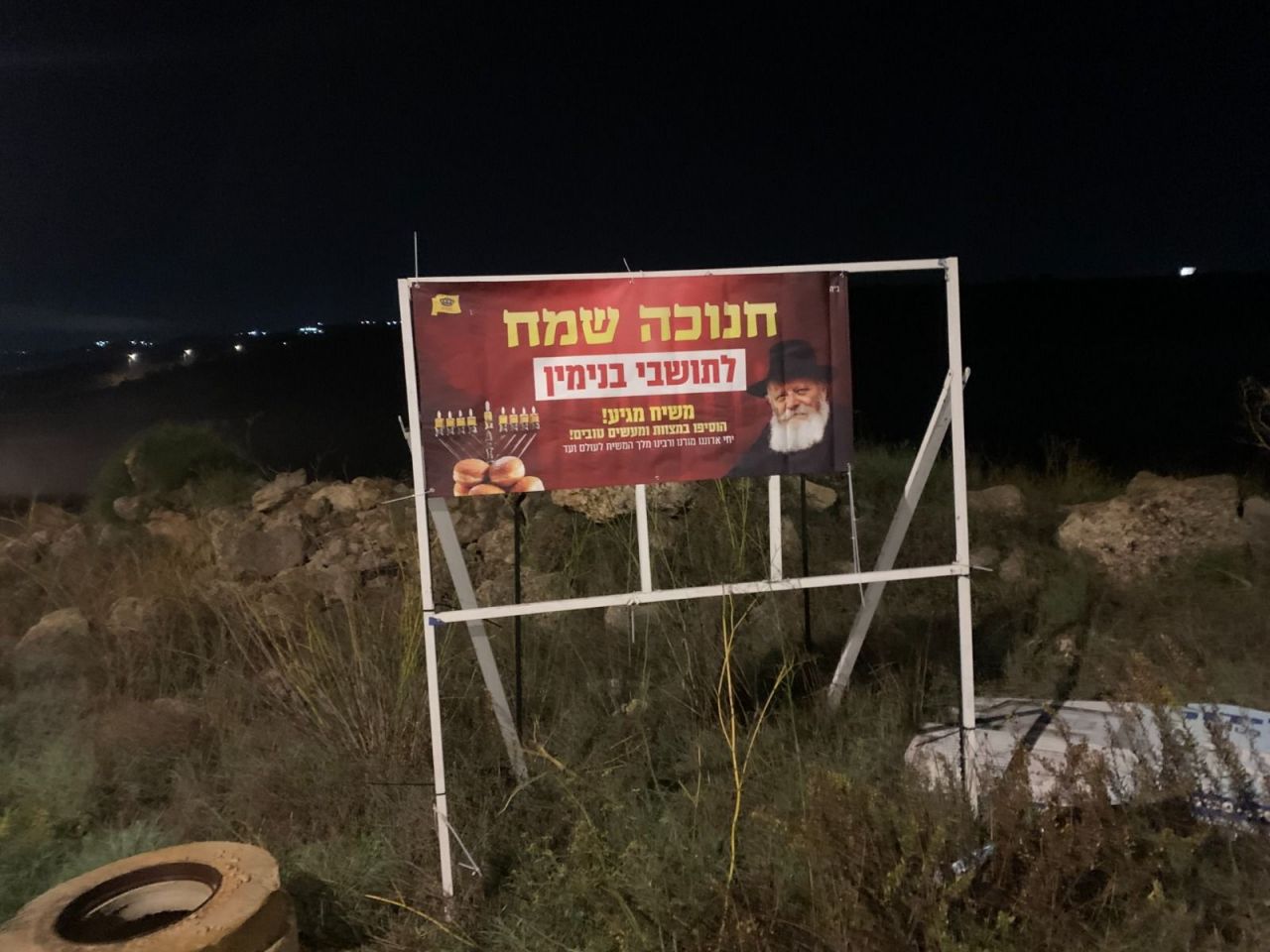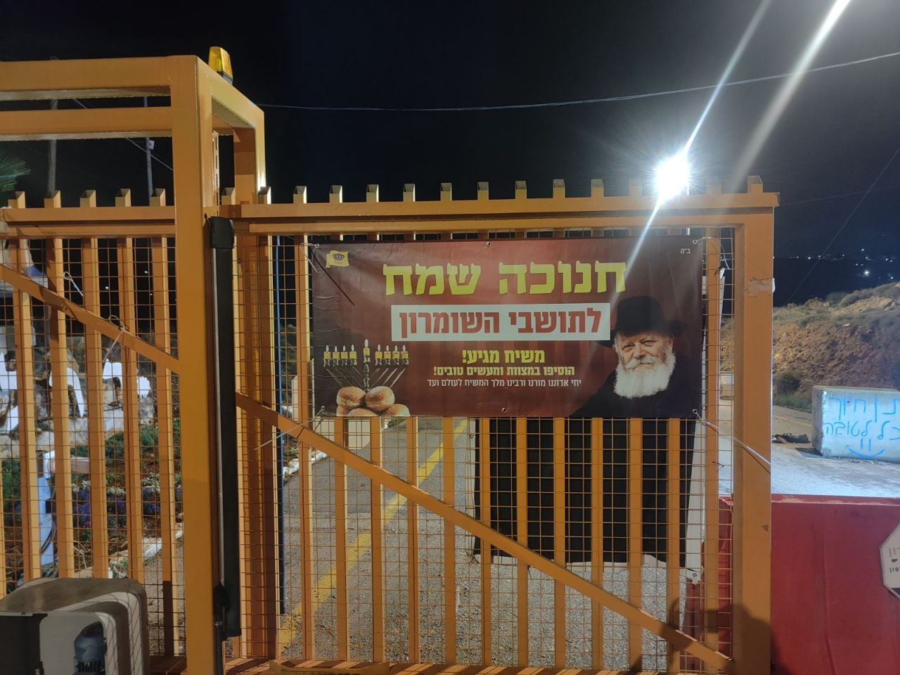 אל מול חשכת הליל והערפל האופף את כבישי יהודה ושומרון, בקע השבוע אור יקרות יוצא דופן. ולרגל חג החנוכה עשרות שמשוניות ענק, עם הכיתוב 'חנוכה שמח' ובשורת הגאולה וזהות הגואל הוצבו בפתחי הערים והיישובים ביו"ש