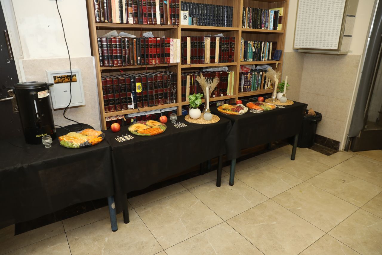 כאשר הגיעה התהלוכה להיכל הישיבה, התכבדו הנוכחים מסט מהודר של פירות חמשה עשר בשבט ומיני תרגימא ומיד החלו מנהג ההקפות הנודע אותו ניהל בחיות חסידותית הרה"ח ר' חיים משה שיחי' אלפרוביץ, משפיע בישיבה.