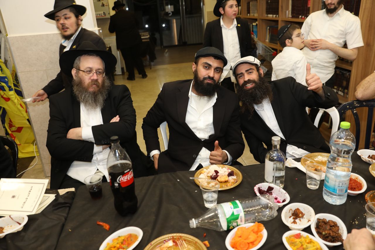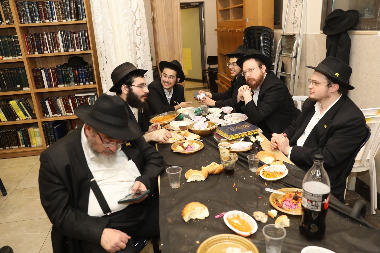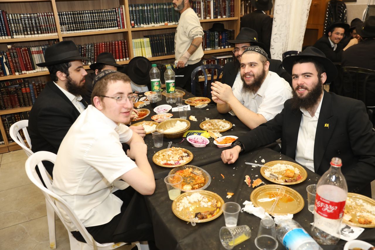 רק לפני חצות ליל התיישב הקהל העצום לסעודת מצווה חגיגית וסיום הרמב"ם שחל בהשגחה פרטית באותו יום, כאשר לכל לראש הוזמן לחגיגה כ"ק אדמו"ר מלך המשיח שליט"א על ידי הרה"ח ר' יעקב שיחי' לנצ'נר ר"מ ומשיב בישיבה.