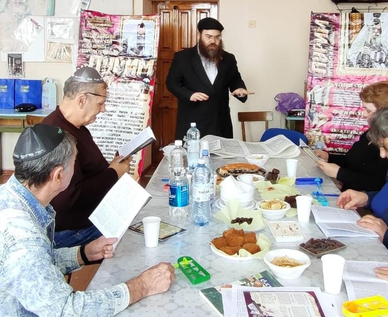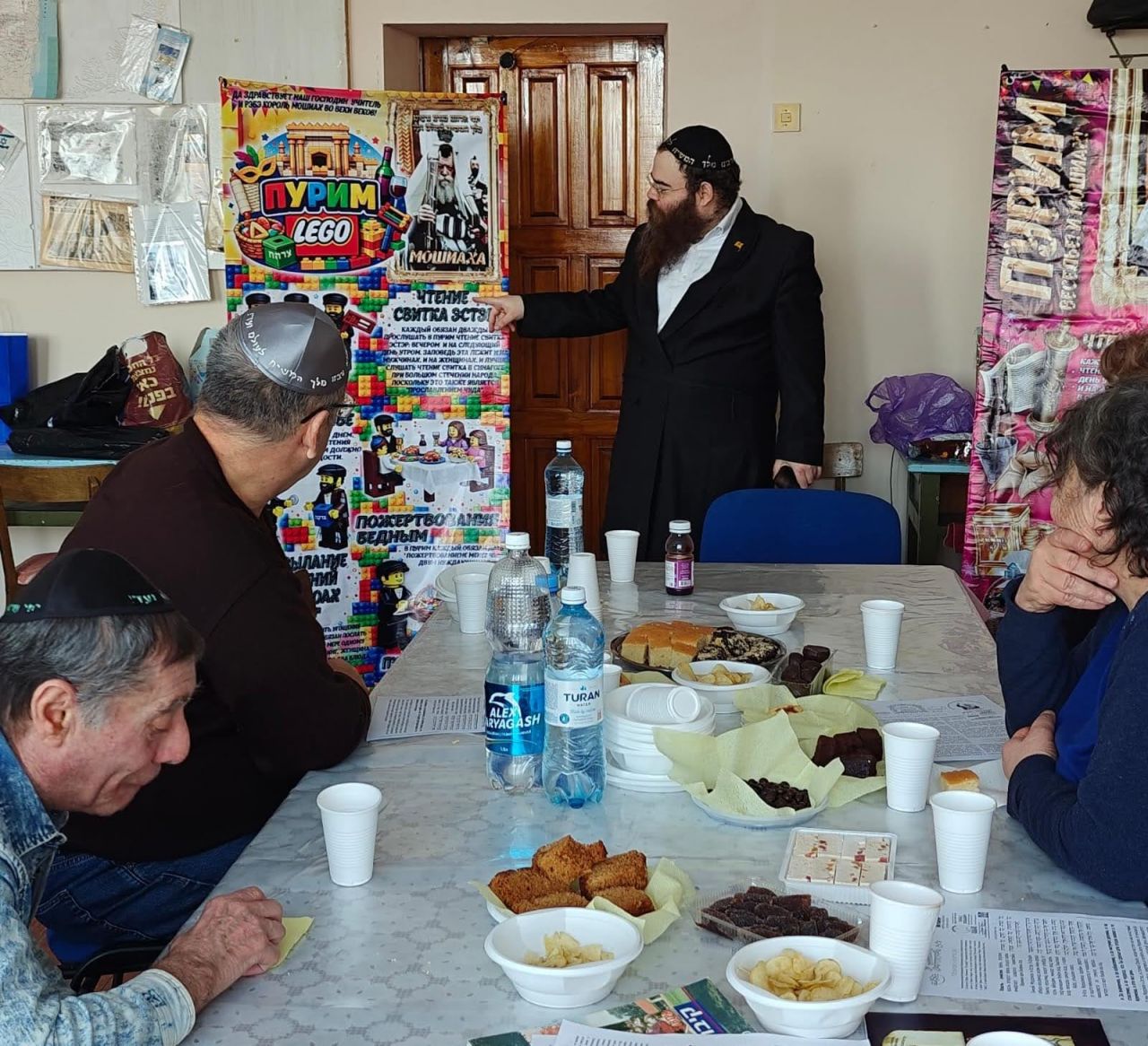 תפילה מיוחדת של "ועל הניסים" בעברית וברוסית נאמרה בצוותא, שיעור על מהות החג עם סעודת פורים שמחה עם אוזני המן מארץ ישראל ואמירת לחיים בשמחת פורים, קאפלאך ממולאים בבשר כשר ומיני מאפה לכבוד החג בצורת 'אוזני המן' המן טאַש, היו מן היהודים המבוגרים שנזכרו בסבתא היהודי מכינה מאכלים יהודים והביאו להם את שמחת החג.