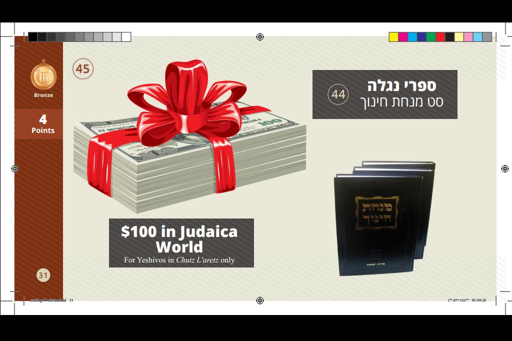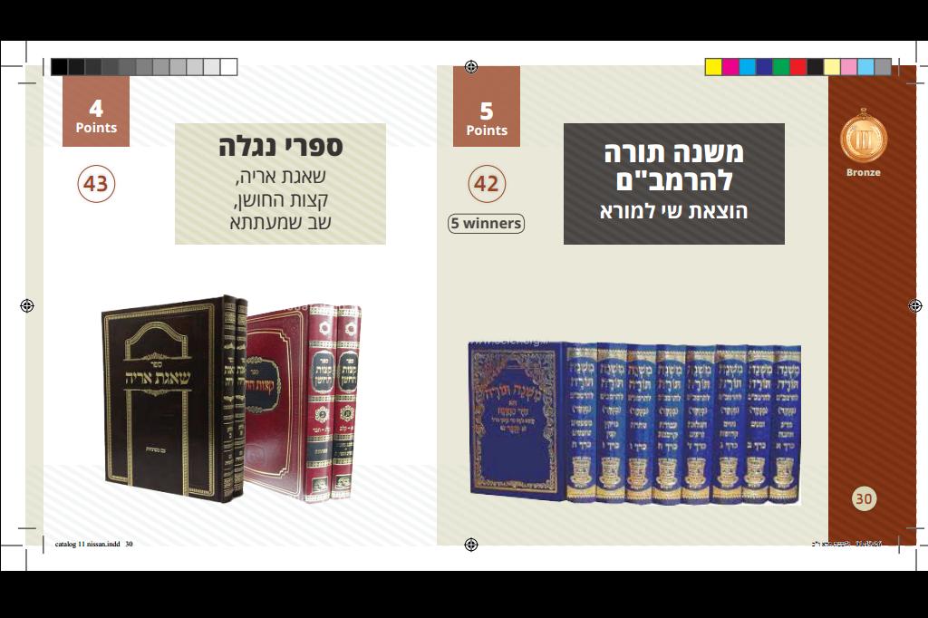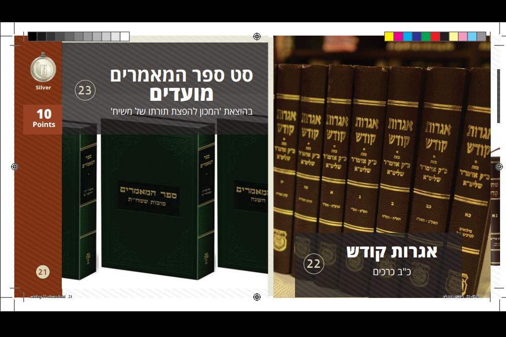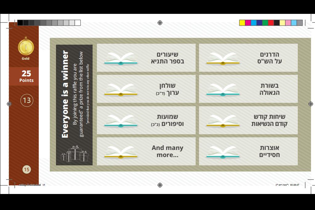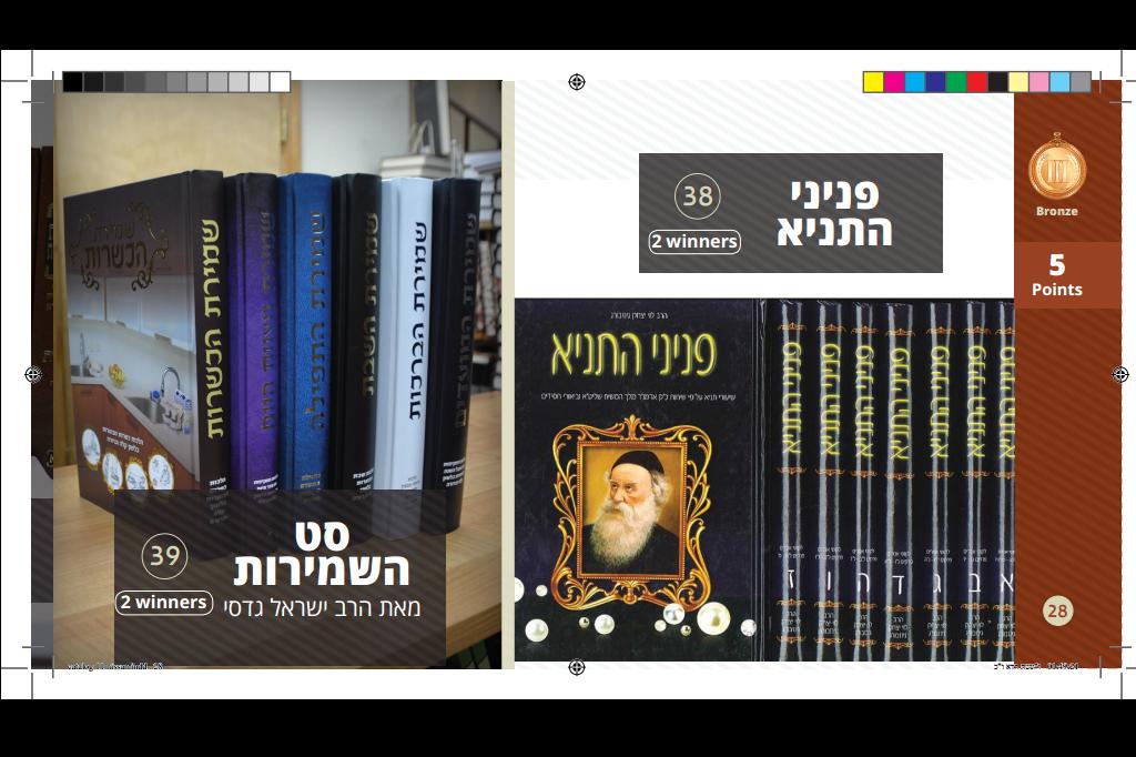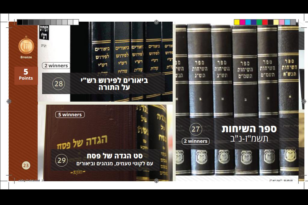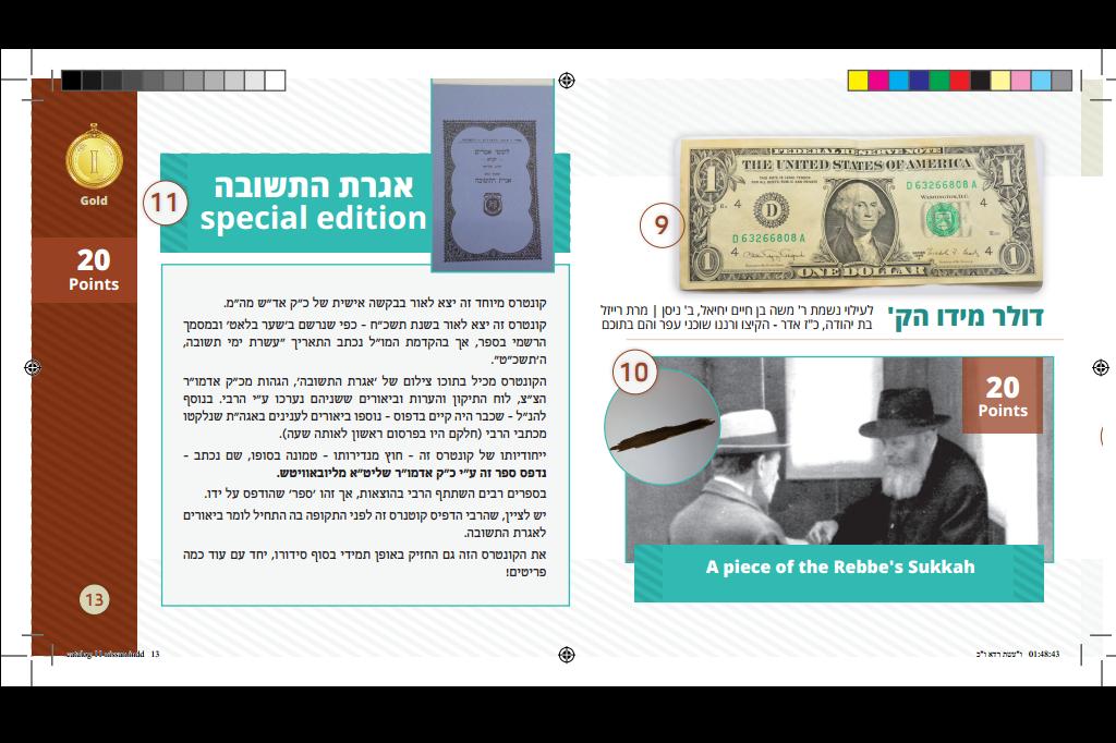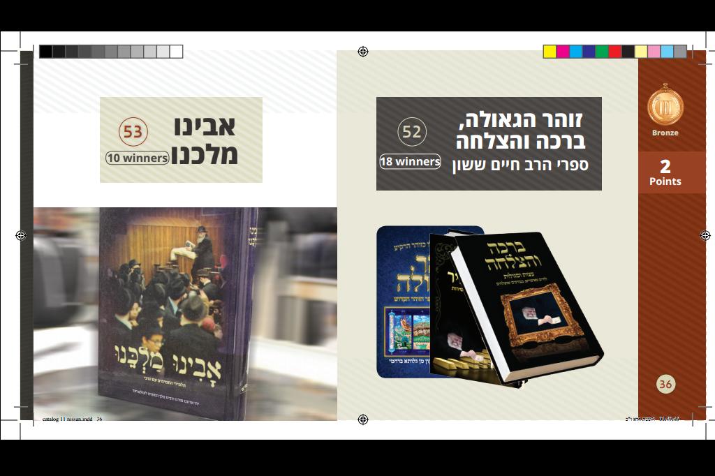 עם פתיחת המבצע התפרסם הקטלוג המושקע עליו עבדו במשרדי את"ה העולמי שבועות ארוכים, ובו עשרות הגרלות על מאות פרסים יקרי ערך: ביניהם פריטים נדירים מידו הקדושה של כ"ק אדמו"ר שליט"א מלך המשיח, עשרות ספרים וסטים, ועוד הגרלות שונות • לצפיה בגליון