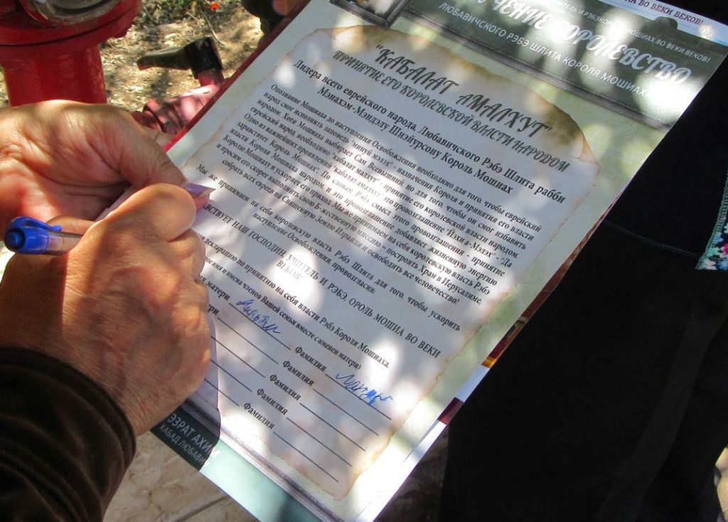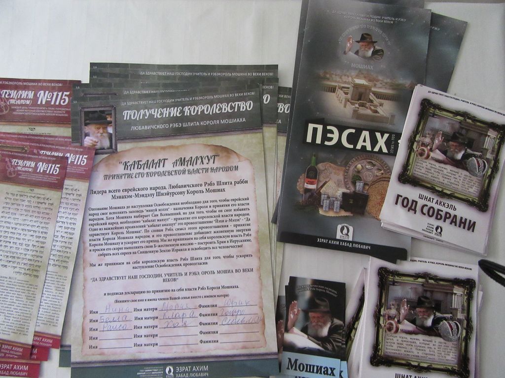 הפקה מהודרת ומרשימה נוספת מ"מטה בשורת הגאולה" שע"י לשכת 'עזרת אחים - חב"ד ליובאוויטש' ליהודי חבר העמים ויוצאי ברית המועצות. דף מהודר לחתימות קבלת המלכות מלכותו של הרבי מליובאוויטש משיח צדקנו, הדף בעיצוב יוקרתי ומכובד בשפה הרוסית.