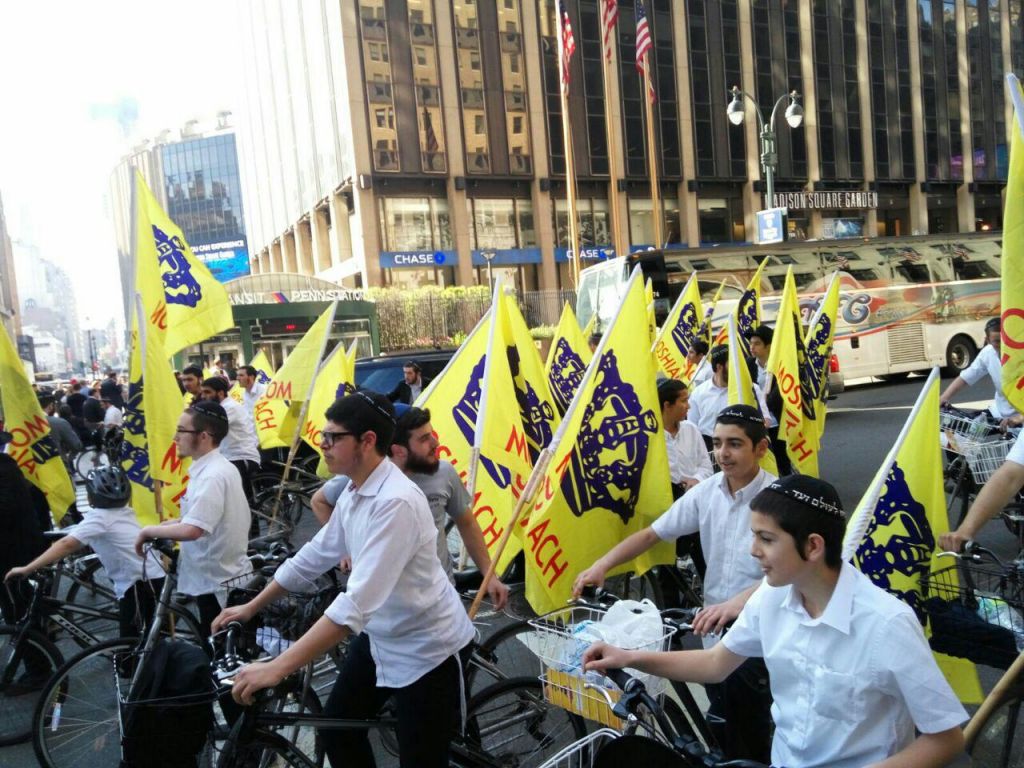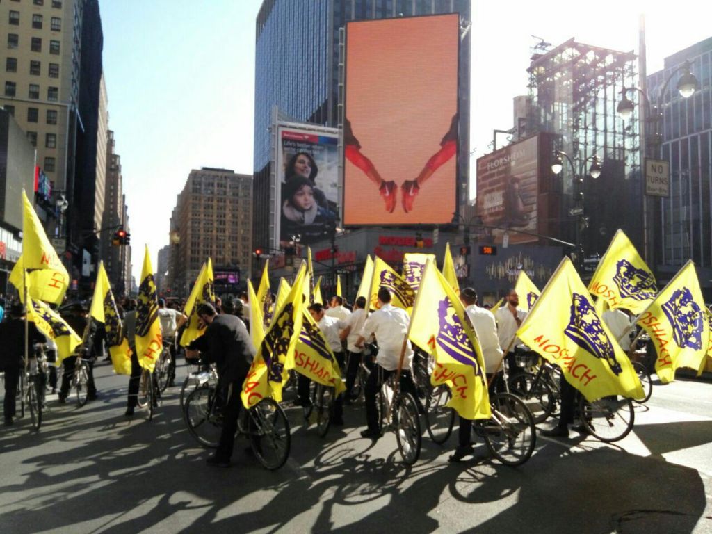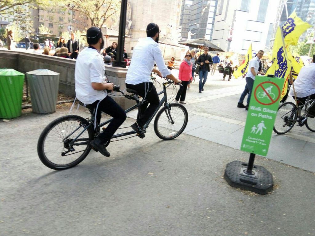 ביום ג' (חול המועד) התקיימה שיירת אופניים לקבלת פני משיח צדקנו ע"י תלמידי ה'קבוצה' כשהתמימים האורחים מצטרפים לשיירה. השיירה יצאה מבית חיינו 770 לפארק במנהטן ומשם לטיימס סקוור, מהטיימס סקוור המשיכו התמימים לנסיעה על הטיילת המקומית.
