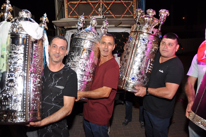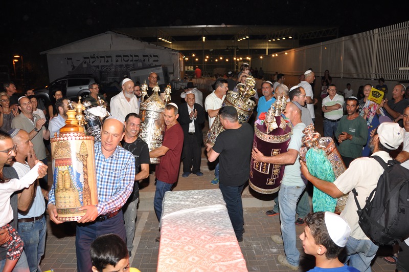 הכנסת ספר תורה רביעי לבית כנסת החבדי תהילת ה" אצל הרב יריב אלוני בכפר יונה בהשתתפות הרב הראשי עוזי שוויצה אשר עוזר ותומך ומשתתף בפעילות בית הכנסת ובית המדרש תהילת ה"