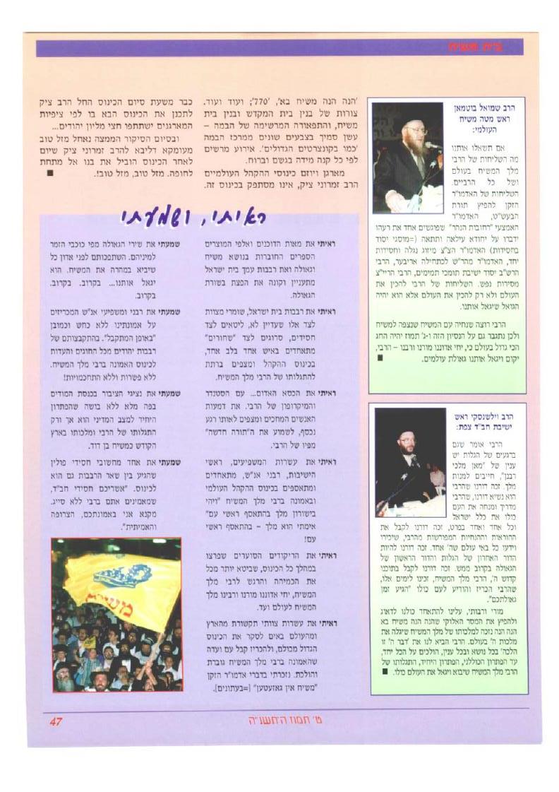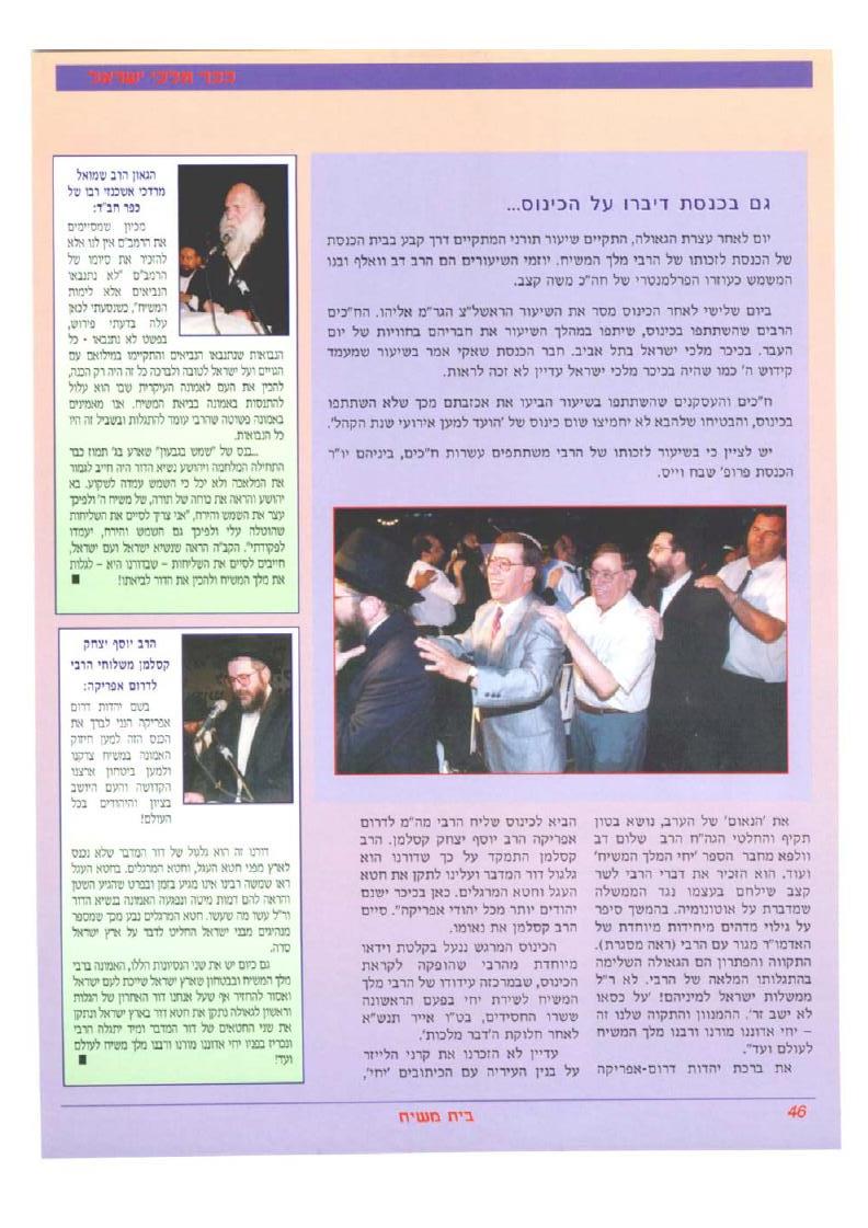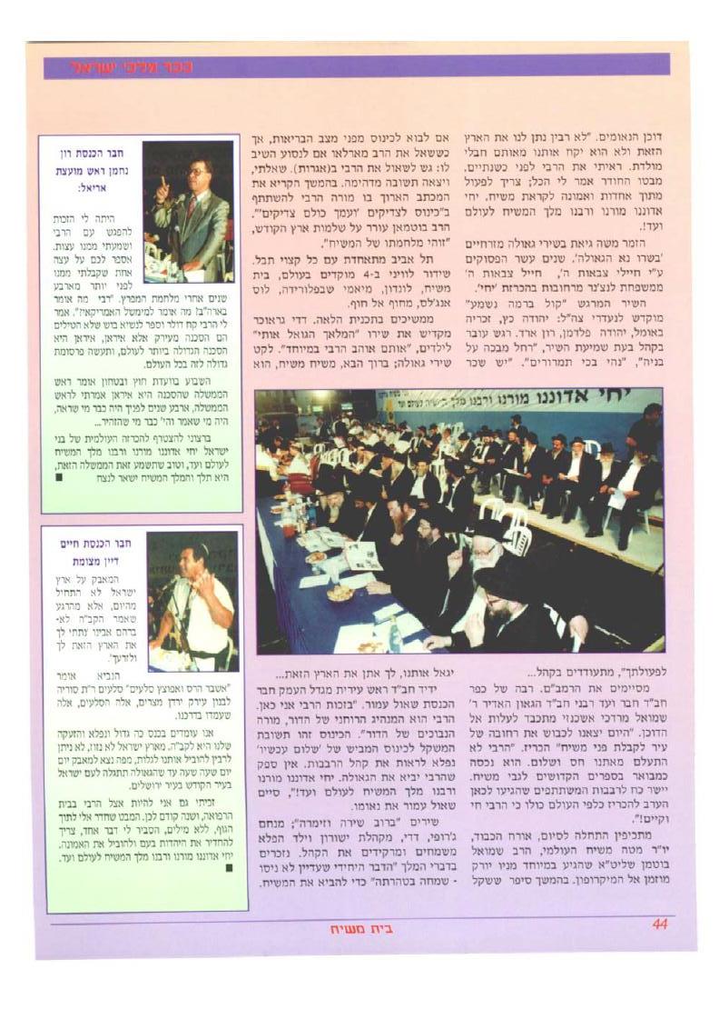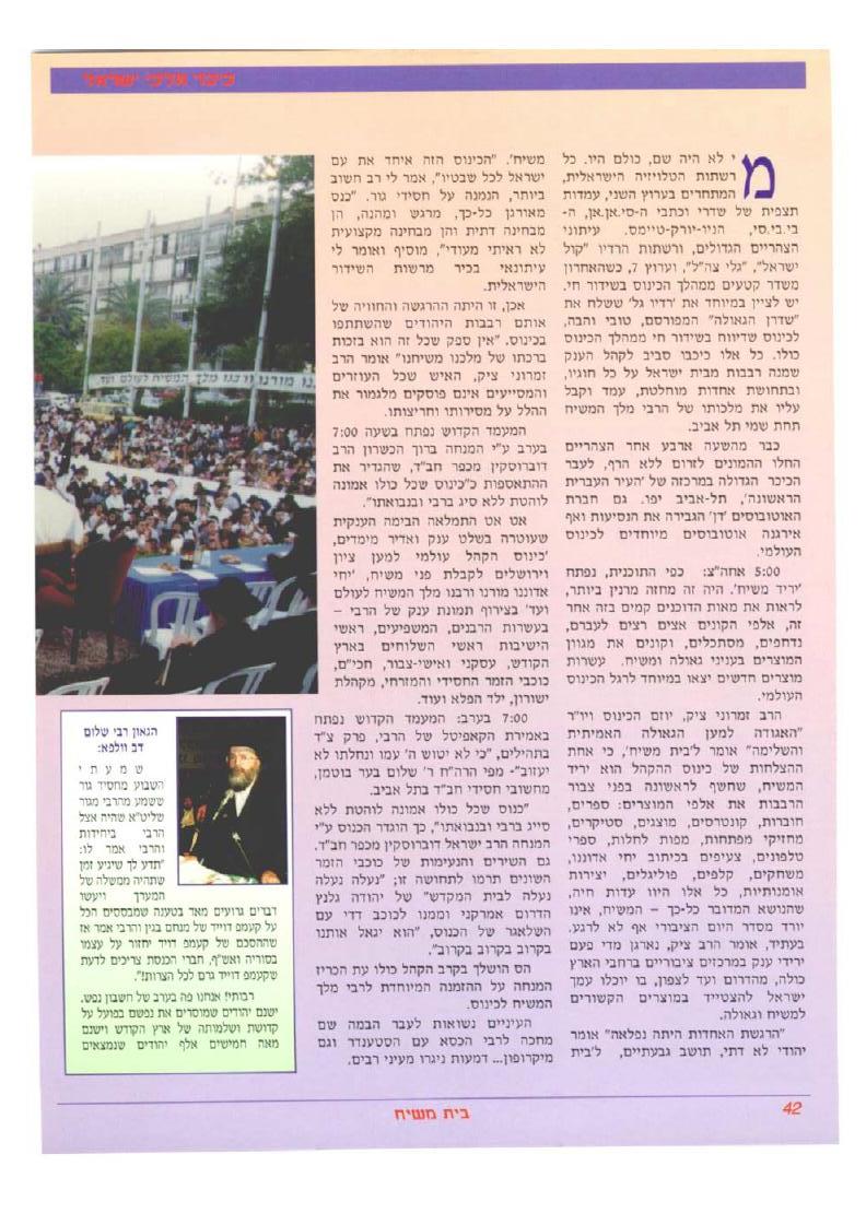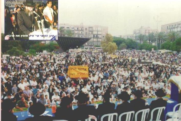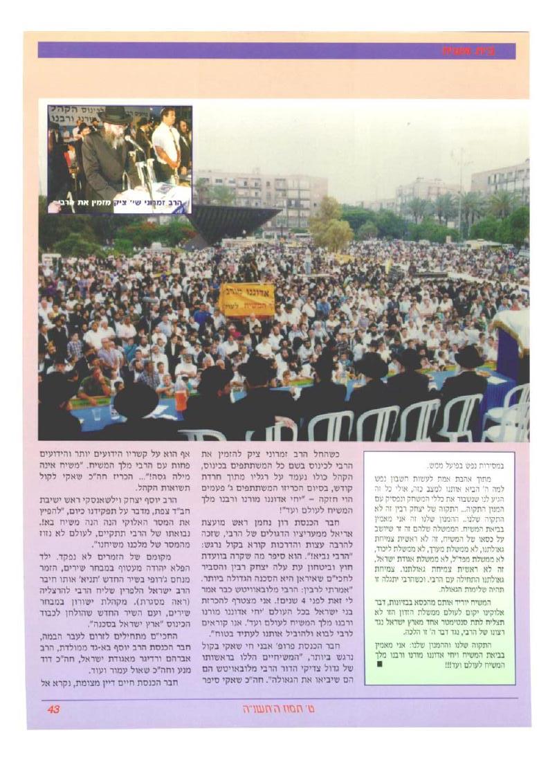 צילום הדיווח מבית משיח מס. 45 על כינוס הקהל בכיכר מלכי ישראל כ"ח סיון תשנ"ה, לפני שלוש שמיטות.