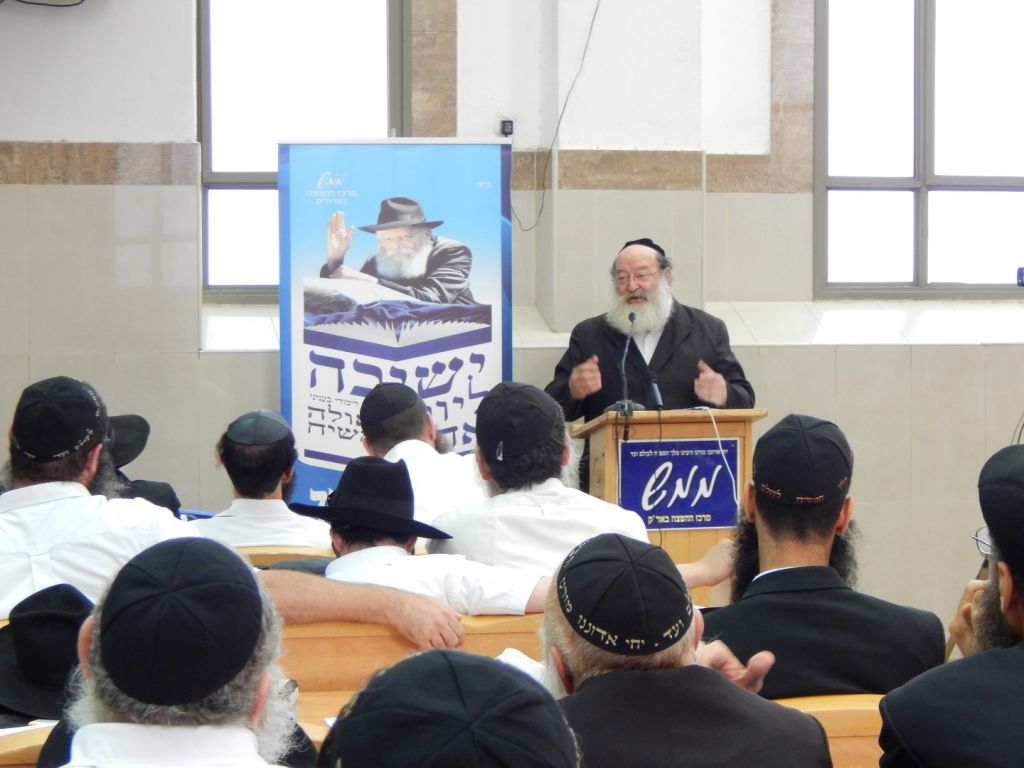 השיעור מצליח לרומם את הקהל ומיד במעבר חד לשיעור מקורי שלא נשמע בדרך כלל מפי גאון מופלא ראש כולל ראדומסק ומחבר ספרי הלכה וחסידות הרב חיים פנחס בייניש. הנושא: גולה וגאולה במשנת השפת אמת מגור.