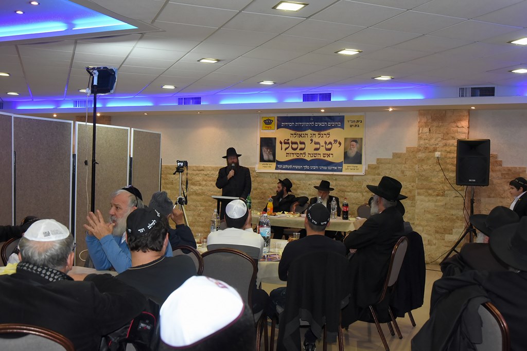 הרב בנציון פרישמן הנחה את הערב, ואחרי דיבור על ענינו של י"ט כסלו, הזמין את הילדים חיילי צבאות ה' אמרו את י"ב הפסוקים והכרזת "יחי". כשלאחר מכן הוזמן הרב בועז סגל מנהל חדר ות"ת חב"ד בת ים עיר הגאולה, לשאת דברי ברכה.