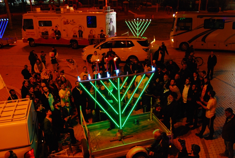 עפ"י קריאת הרבי שליט"א מלך המשיח, חנוכיות ענק הוצבו במקומות מרכזיים ומידי ערב התקיימה הדלקה ע"י תלמידי הישיבה.