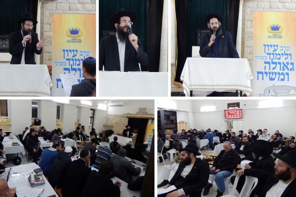 את השיעור הראשון פתח הרב משה קורנוויץ, ר"מ ומשפיע בישיבת חב"ד נצרת עלית, בסקירה על "מלחמת גוג ומגוג" מתוך דברי הנביאים יחזקאל וזכריה, ולאור ביאוריהם של גדולי המפרשים ורבותינו נשיאנו. לאחריו נמסר שיעור מרתק מאת הרב שמעון ויצהנדלר ראש ישיבת תות"ל ראשל"צ, השיעור התמקד בדמותו של הגואל בחז"ל, בהלכה, ובתורתו של הרבי מלך המשיח שליט"א ,