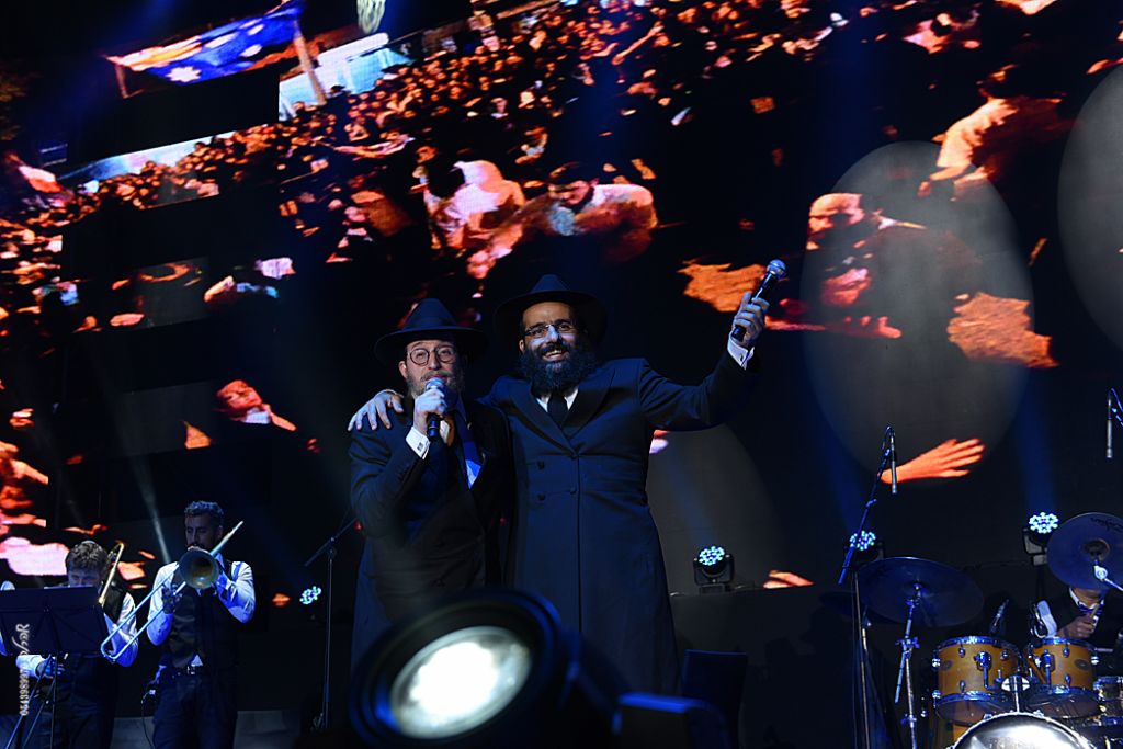 הערב עמד בסימן הדרישה להתגלות הרבי שליט"א מלך המשיח מתוך שמחה אותה בטאו ברוב שירה וזימרה אומני הזמר החב"די ר' מנדי ג'רופי ור' יוני שלמה. מקהלת 'מלכות' החסידית והגדולה בישראל, יחד עם אמן הרגש זאנוויל וינברגר, בצעו את עשרת ניגוני הרבי שליט"א מלך המשיח בשיתוף הקהל. במהלך חלק זה, השתתפה מקהלת הילדים של תלמוד תורה ליובאוויטש, וכן הזמר החסידי ר' מנדי ג'רופי כשהוא סוחף את הקהל עם הניגון החדש על הקאפיטל של הרבי שליט"א מלך המשיח. רבבת חסידים עומדים על רגליהם ושרים בהתלהבות, אמונה ושמחה של התקשרות.