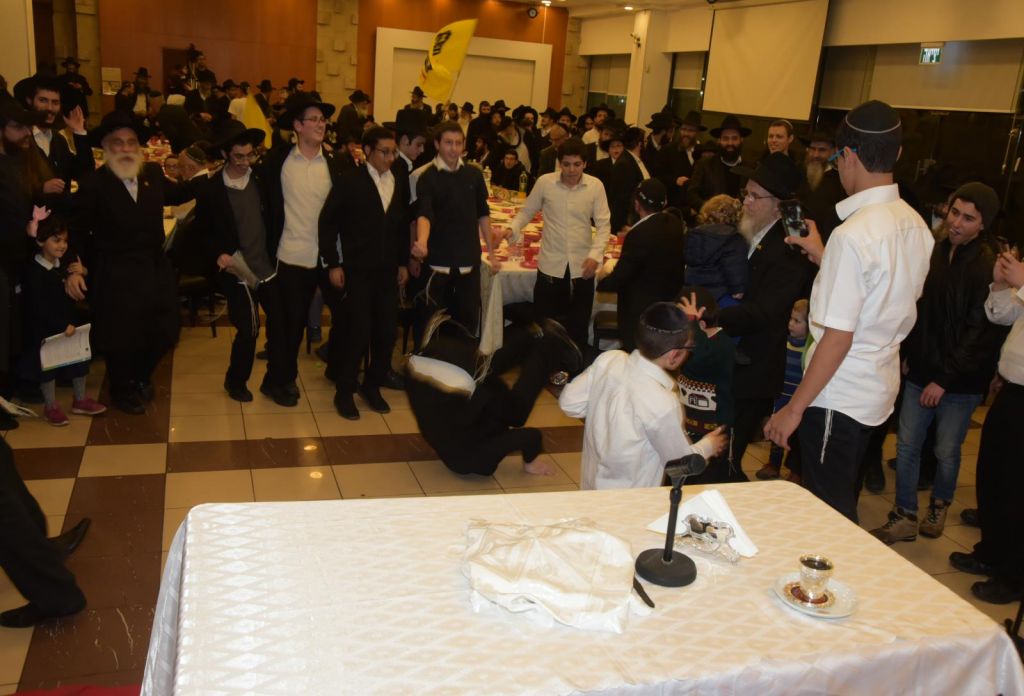 עם סיום הכרזת הקודש, הבעל מנגן החסידי ר' אוריה שיף והקלידן הת' דוידי נחשון פוצחים במחרוזת "ניגוני גאולה ומשיח", יחד עם הקהל הרב שפורצים בריקודים סוערים.
