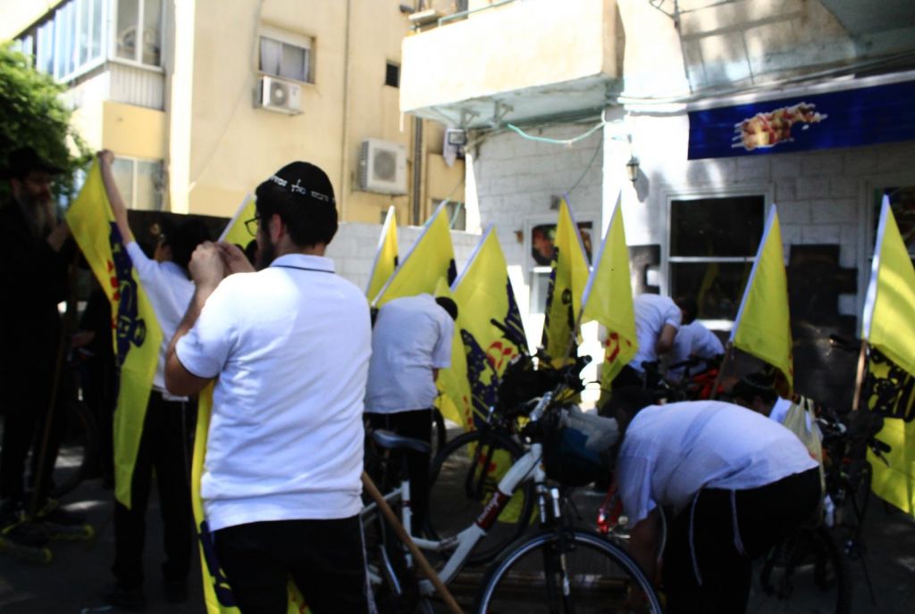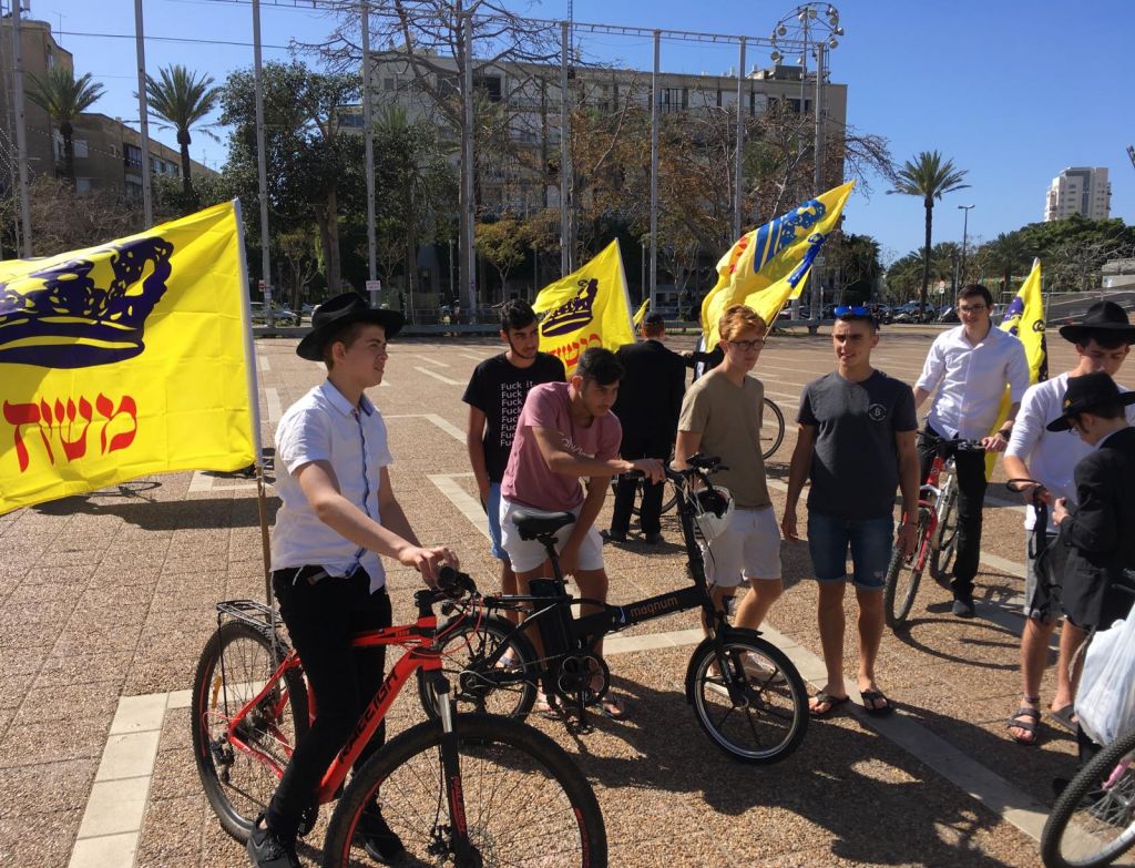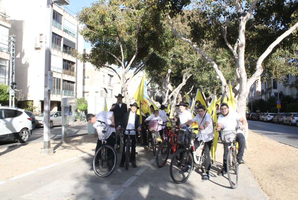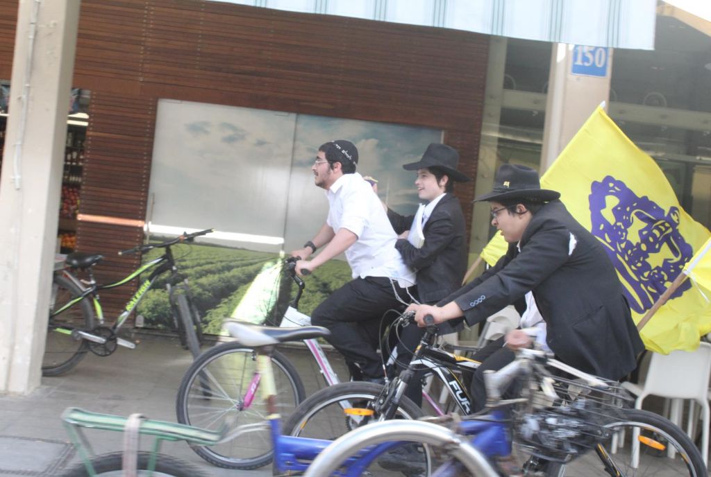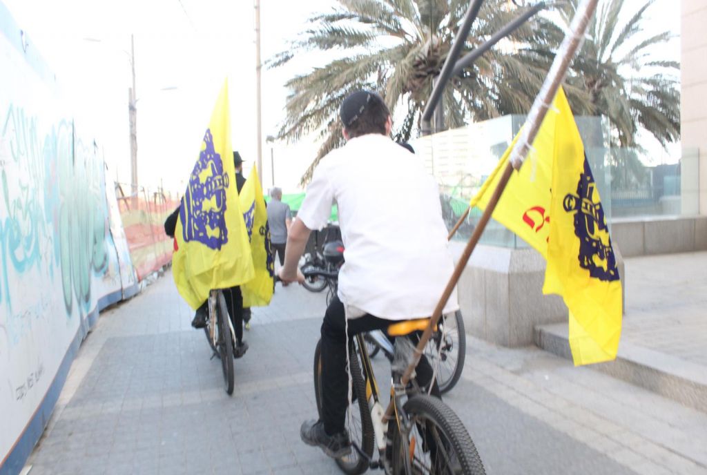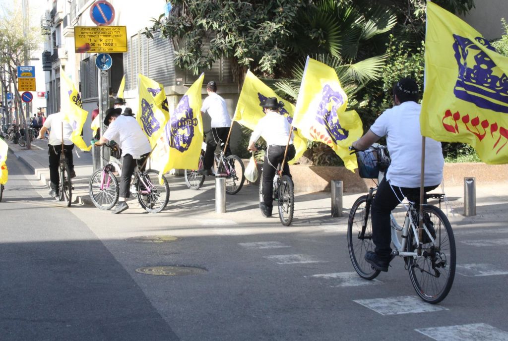 בשעות אחר הצהריים השיירה יצאה לדרך ברחובות תל אביב בהשתתפות 50 תלמידי התמימים ואנ"ש שרכבו על אופניים הנושאים בגאון דגל משיח וחומר פרסום של "בשרות הגאולה" וכמובן ערכת התפילין לזיכוי הרבים.
