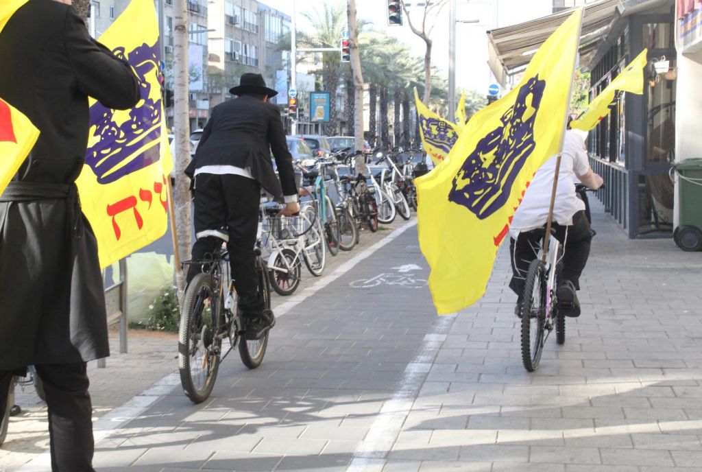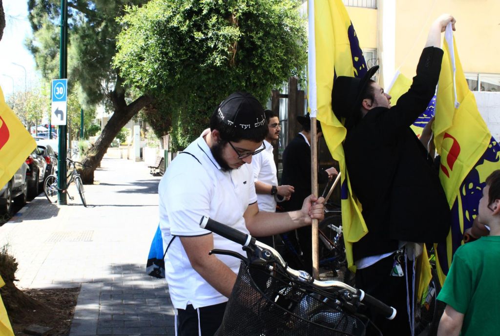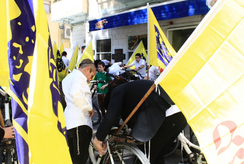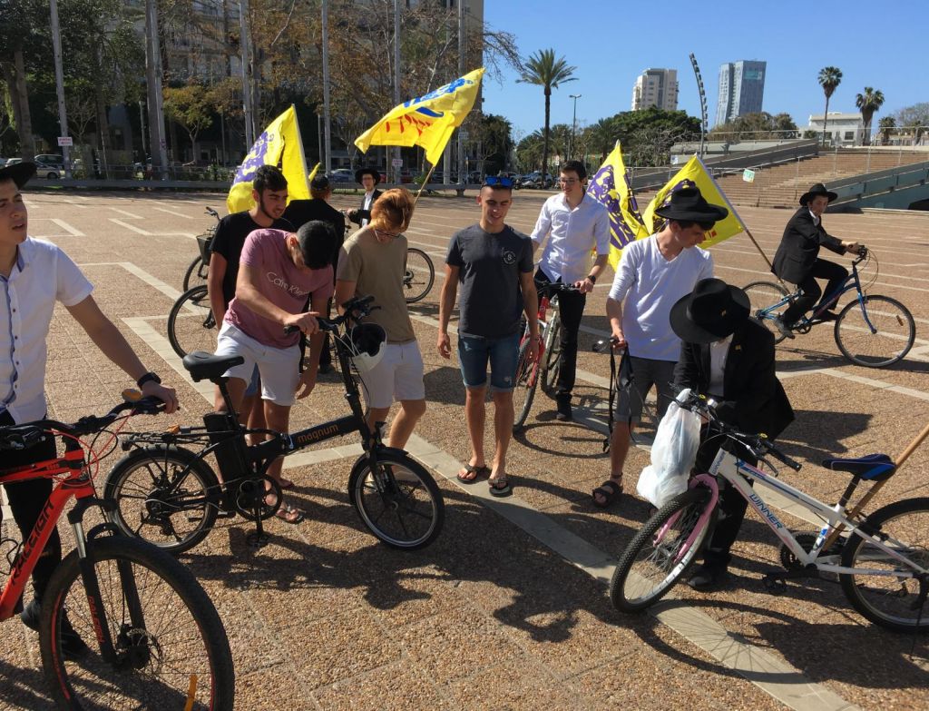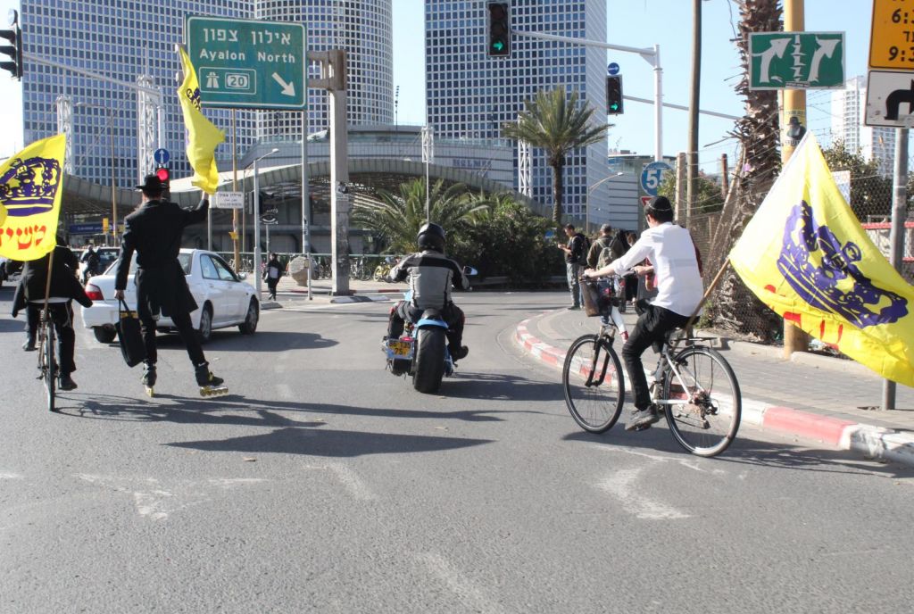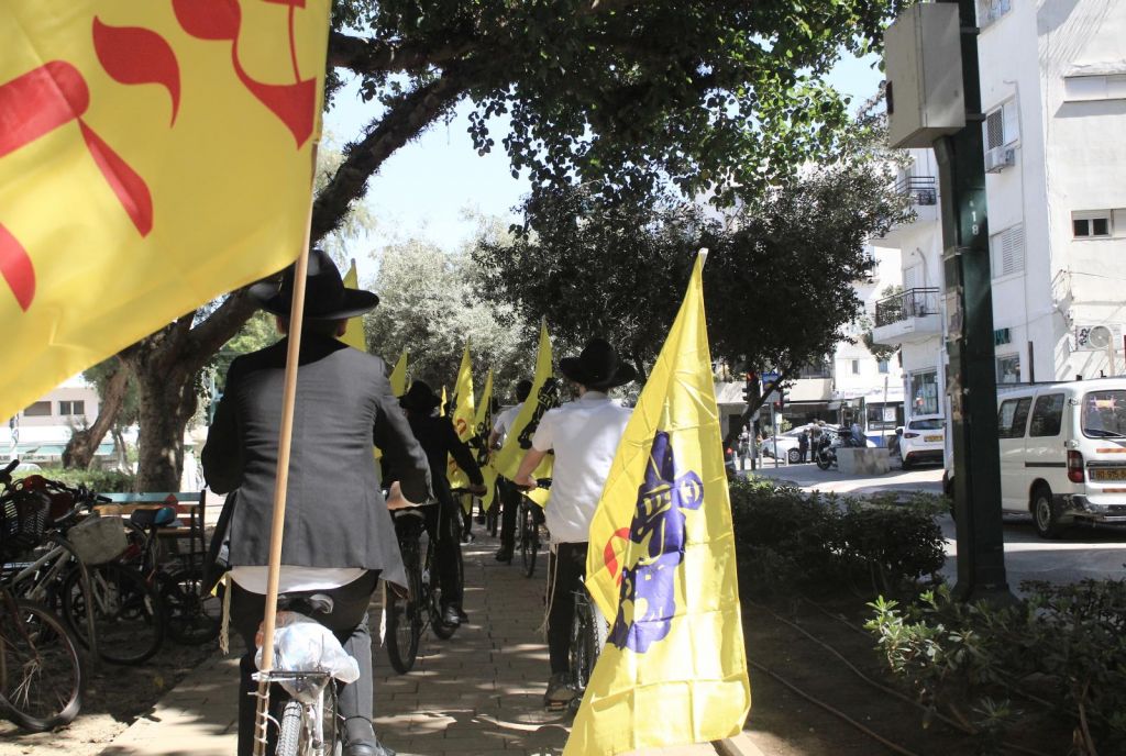 בשעות אחר הצהריים השיירה יצאה לדרך ברחובות תל אביב בהשתתפות 50 תלמידי התמימים ואנ"ש שרכבו על אופניים הנושאים בגאון דגל משיח וחומר פרסום של "בשרות הגאולה" וכמובן ערכת התפילין לזיכוי הרבים.